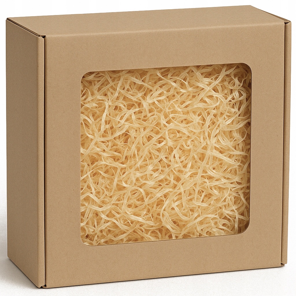 - Продукты аккуратно разложены на декоративном деревянном сене, что придает набору деревенский, праздничный характер.