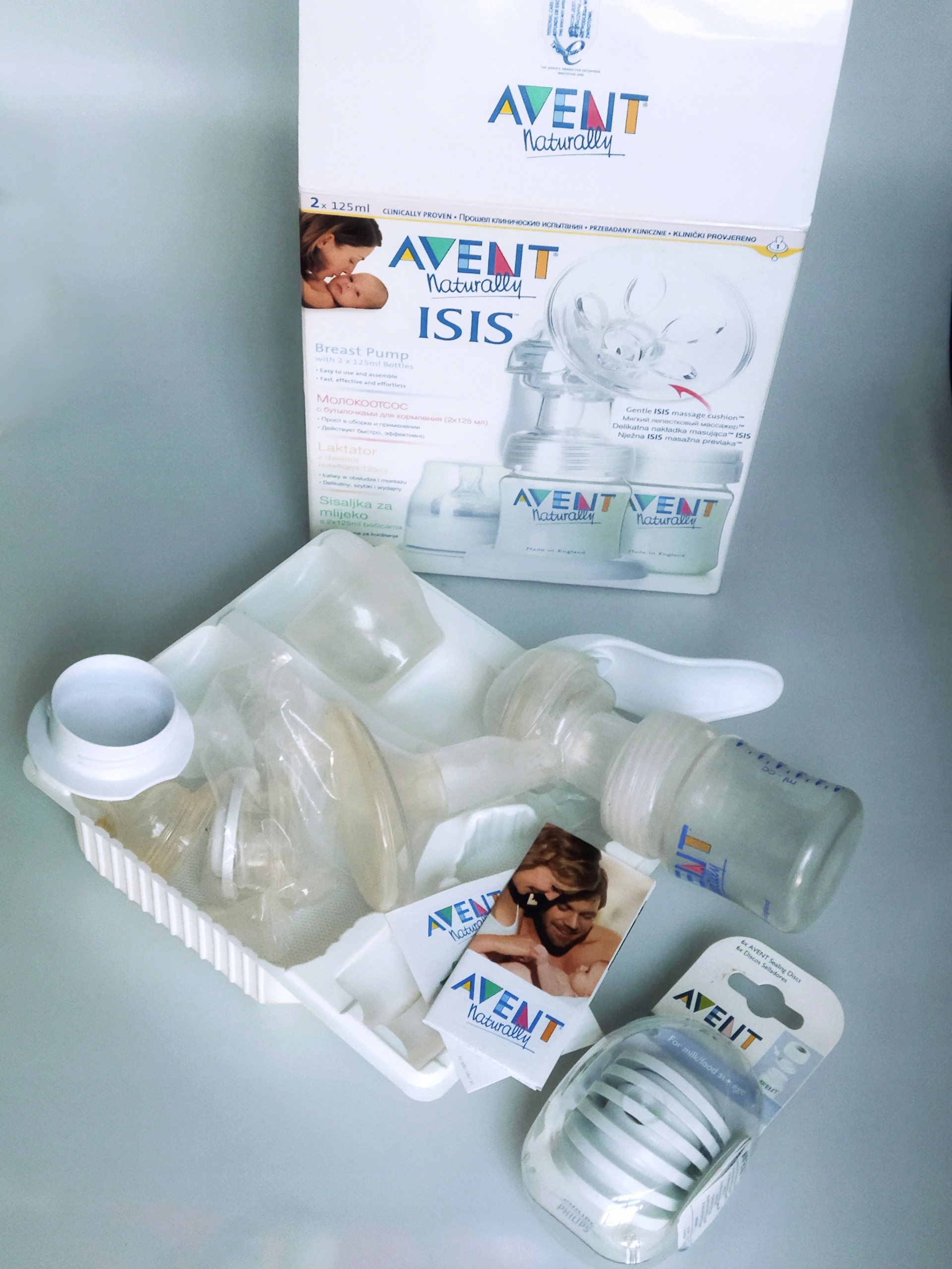NOWE Avent nakładki + gratis używany laktator, dyski na butelki zestaw