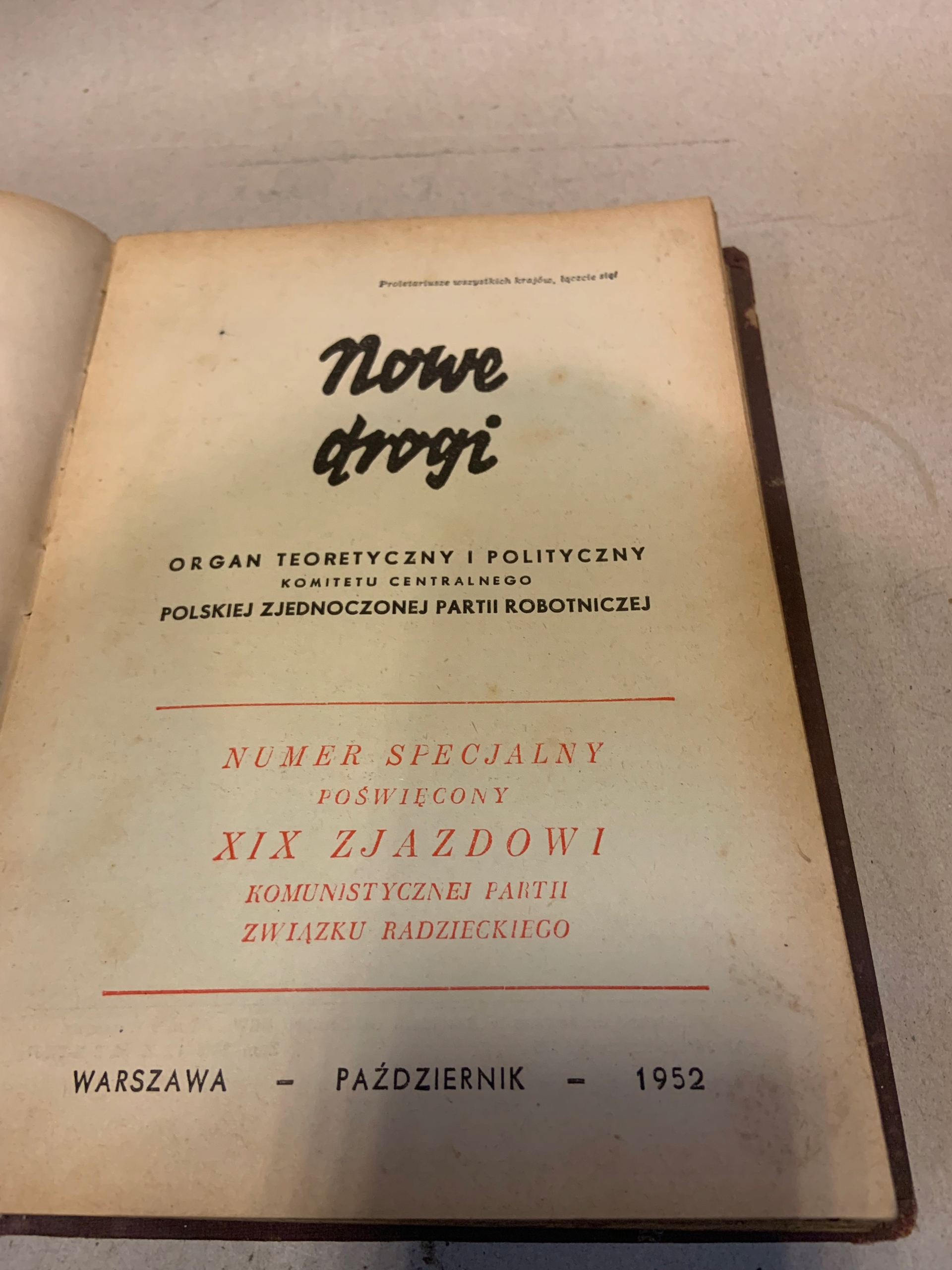 NOWE DROGI POŚWIĘCONE XIX ZJAZDOWI PARTII ZSRR 1952 R