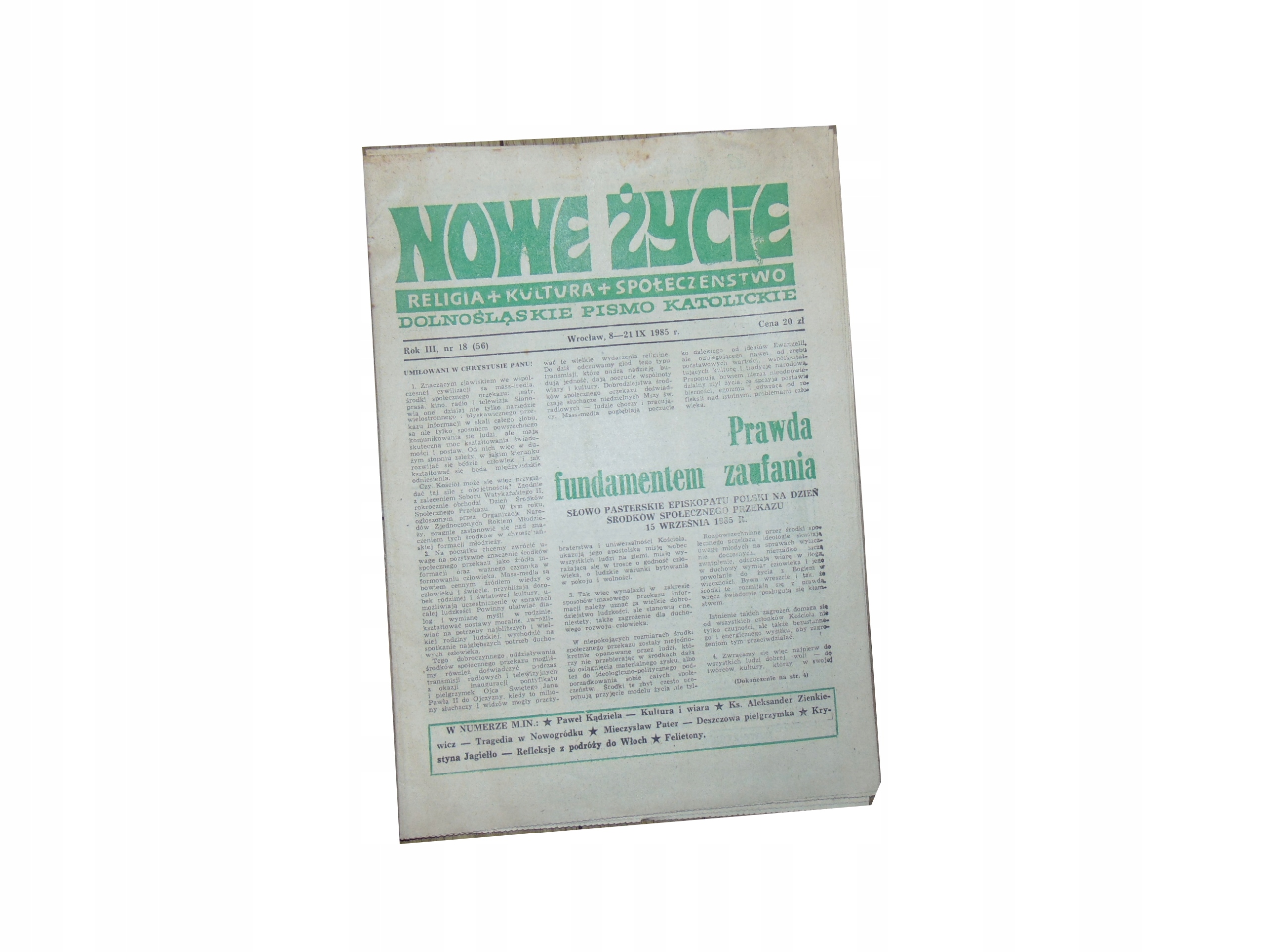 NOWE Życie № 18 (56) 8-21 сентября 1985 г. Нижнесилезский католический журнал