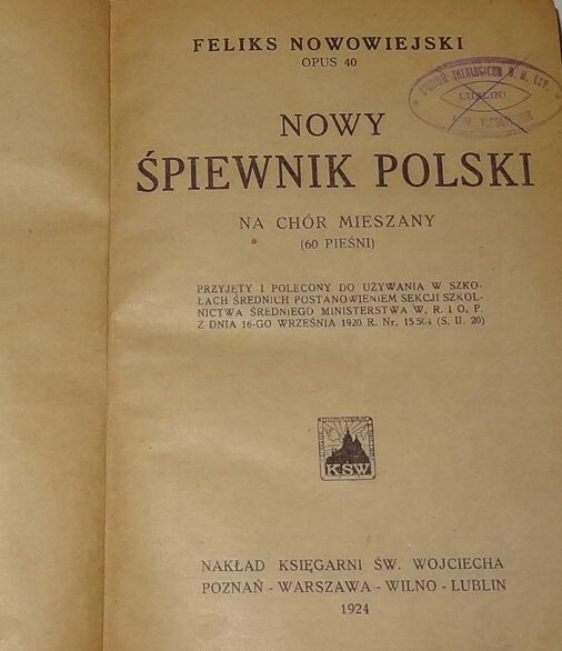 Nowy śpiewnik polski na chór mieszany Feliks Nowowiejski 1924 r.