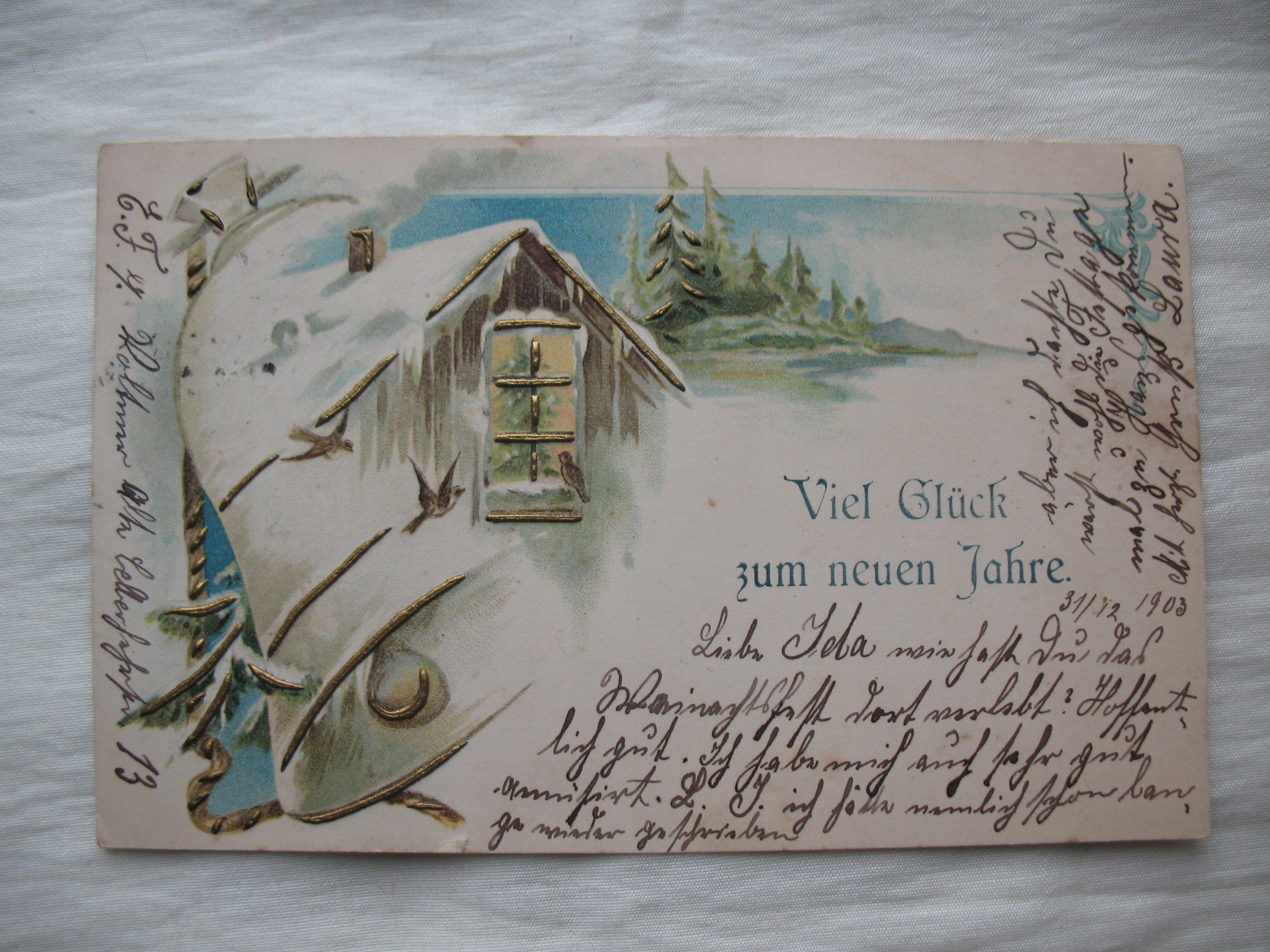 NOWY ROK DZWON LAS CHATKA przedwojenna POCZTÓWKA