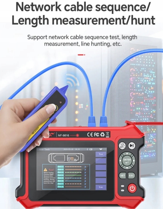 - Поддержка теста последовательности сетевых кабелей, измерения длины, охоты на веревке и т. Д.
