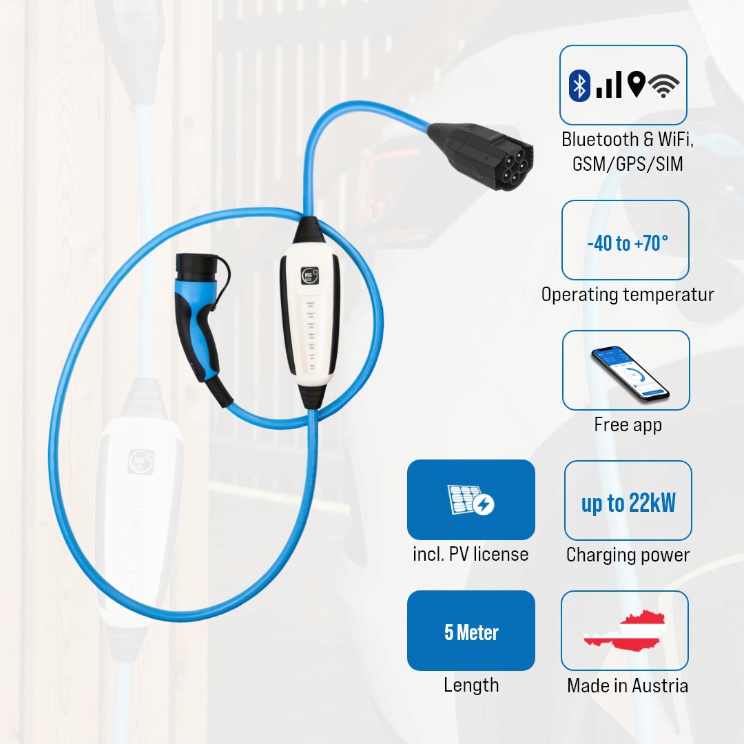 NRGkick 32A Pure для фотоэлектрических пользователей с GSM/GPS/SIM/WIFI/BT 5 метров 22 кВт