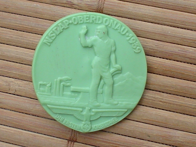 Средний значок Обердонау с 1939 года, версия зеленого пластика, реверс, подписанный «RZM M9/25» и название производителя. Предложение не предназначено для продвижения нацистских и фашистских идей. Он также никоим образом не выражает убеждения и взглядов продавца. Он имеет только историческую природу коллекционера