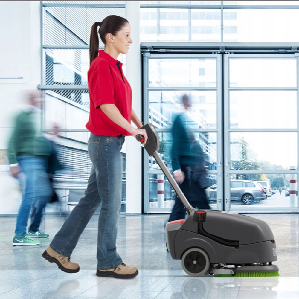 Машина предназначена для ежедневной уборки твердых полов на небольших площадях, в коридорах и в труднодоступных местах.