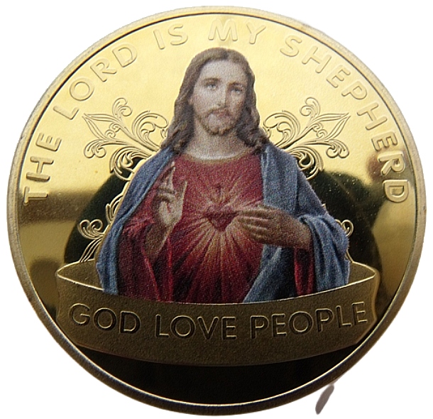 НУМІЗМАТ ІСУС ХРИСТОС І ХРЕСТ - СЕРЦЕ ЖОВТИЙ 40мм