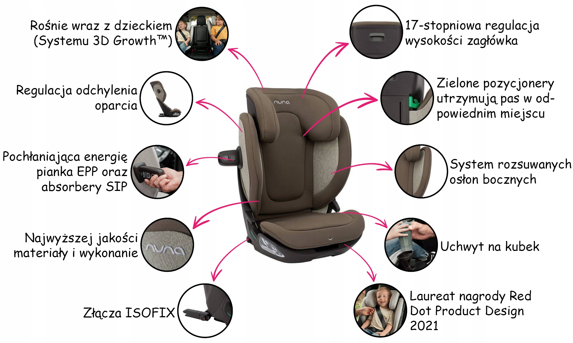 • Расширяется - Система сдвижных боковых чехлов позволяет регулировать ширину спинки под плечи ребенка. Оно растет одновременно с подголовником.