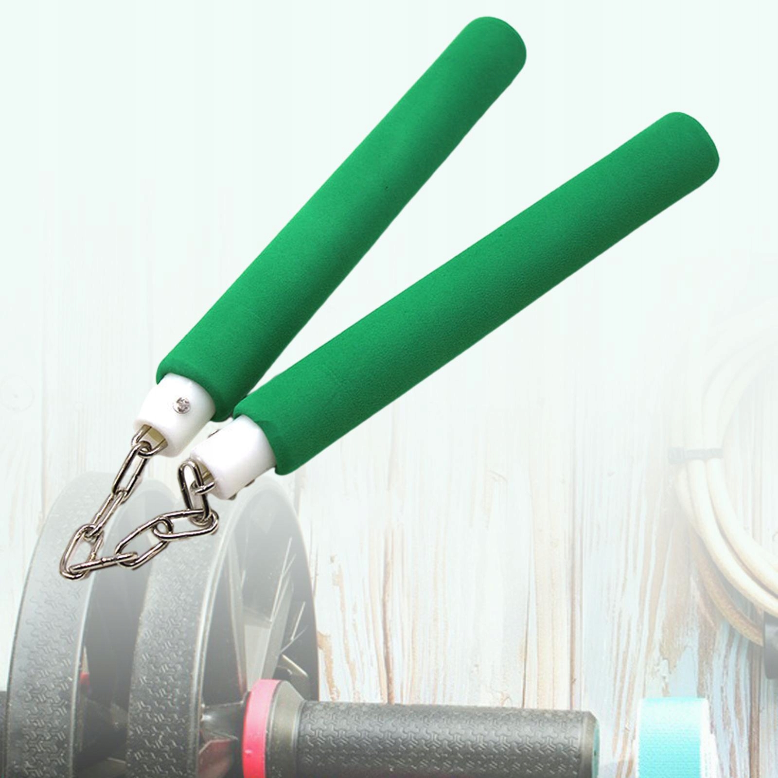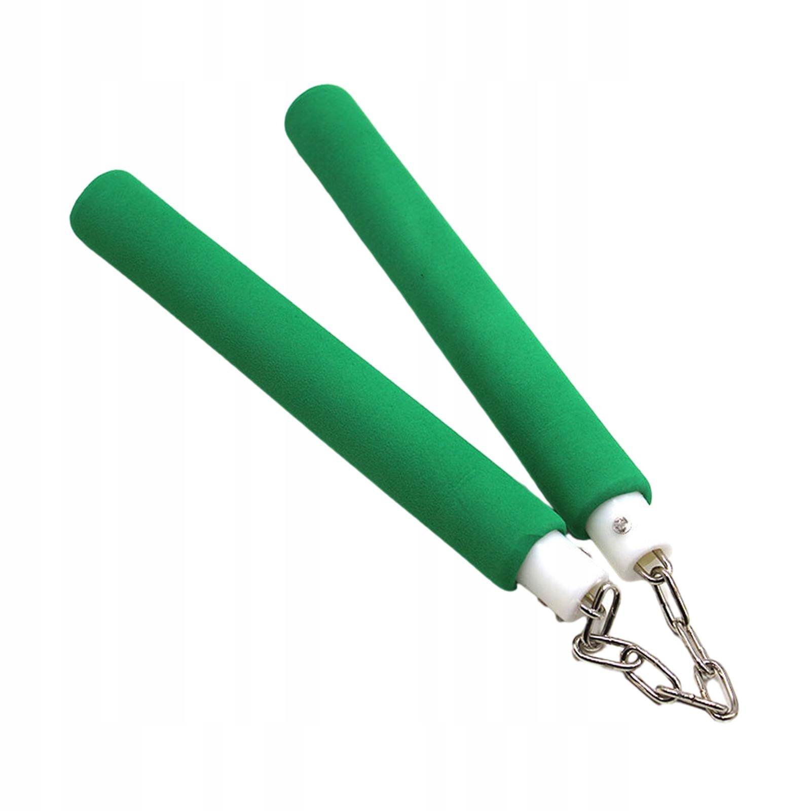 Нунчаки тренувальні поролонові, нунчаки зі сталевим ланцюжком, китайські нунчаки зелені