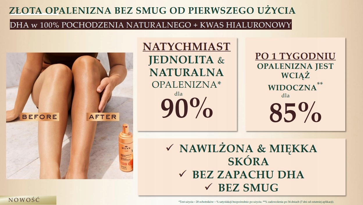 Результаты: мгновенное здоровое сияние у 100% женщин, естественный и ровный загар у 90%*. Интенсивность загара можно регулировать, повторяя применение каждые 2 или 3 дня.