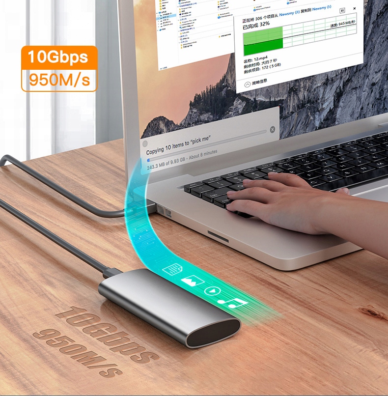 - Сверхбыстрая полоса пропускания: 10 Гбит/с NVME, 6 Гбит/с SATA PCIe.