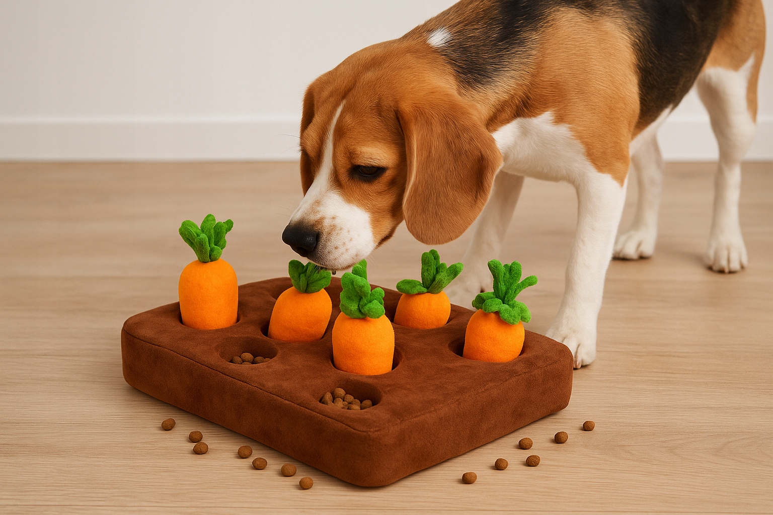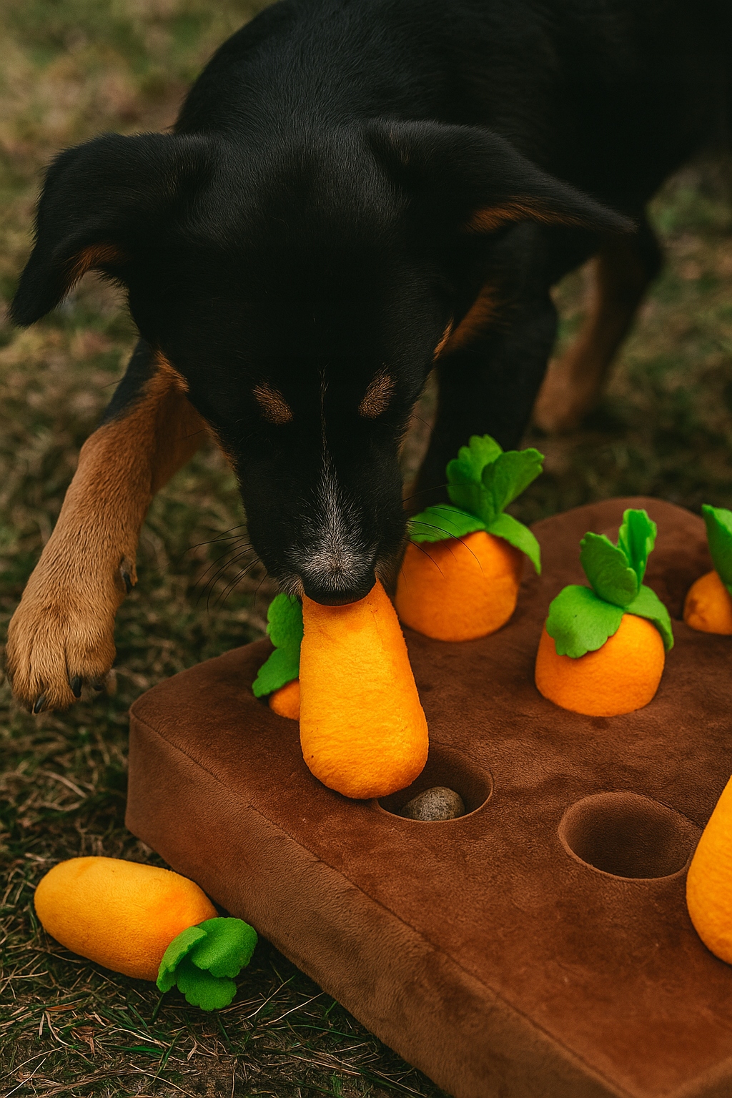 Поместите вкусы или сухой пищи в мягкие отверстия, и задача собаки состоит в том, чтобы вытащить морковь и обнаружить скрытые деликатесы. Это не только развлечение, но и тренировка терпения, концентрации и развития естественного поиска.