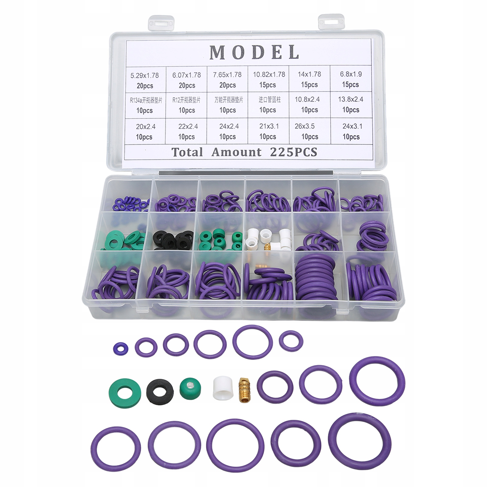 1. Полный комплект: Ассортимент уплотнительных колец включает 14 размеров уплотнительных колец и 4 вида шайб и шайб, всего 225 штук, хорошо упакованных в коробку, чтобы она была аккуратной и более удобной в использовании.