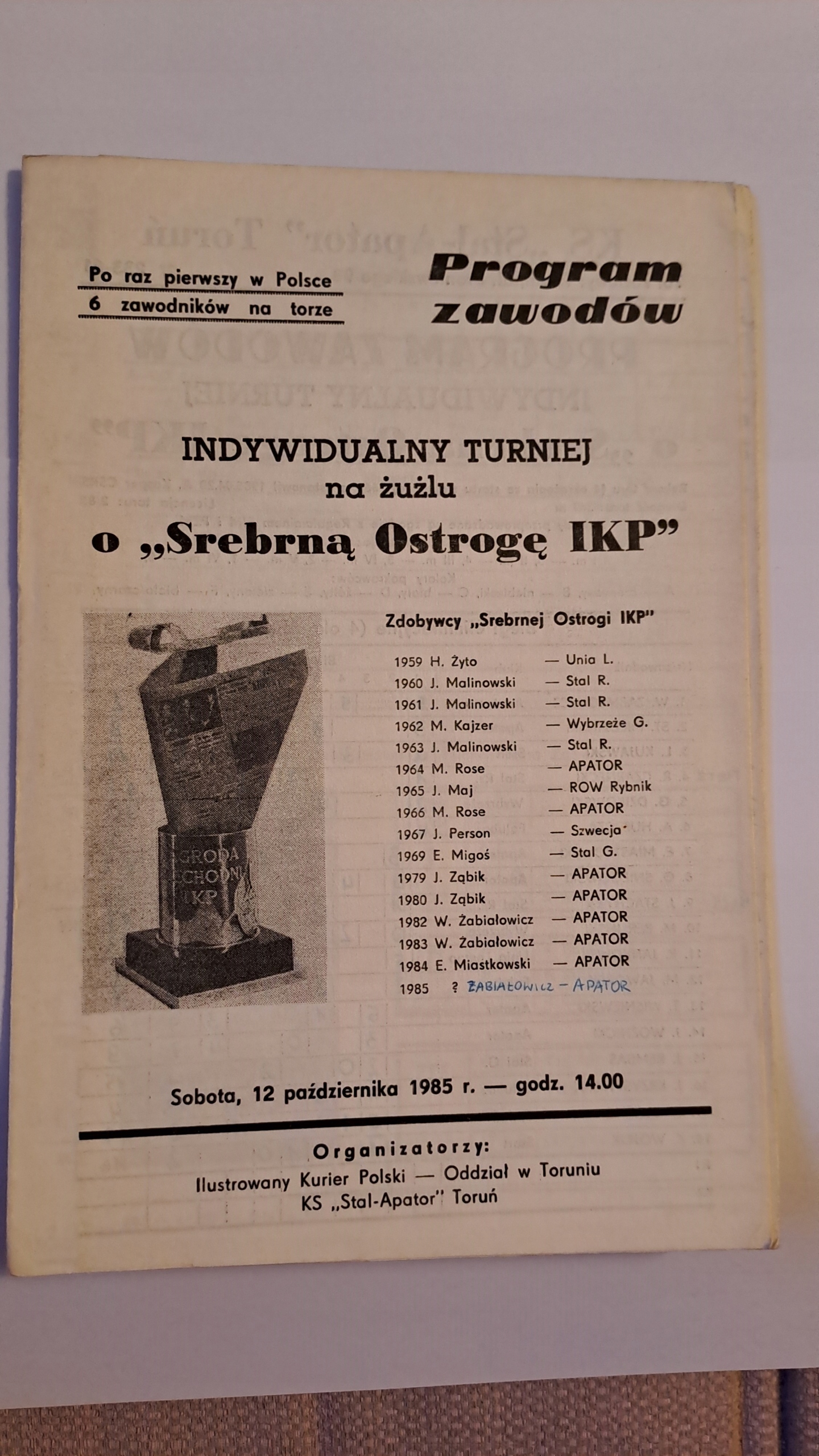O СРІБНА ШПОРА IKP АПАТОР ТОРУНЬ 12-10-1985 - ШЛАКОВА ПРОГРАМА ЗАПОВНЕНА