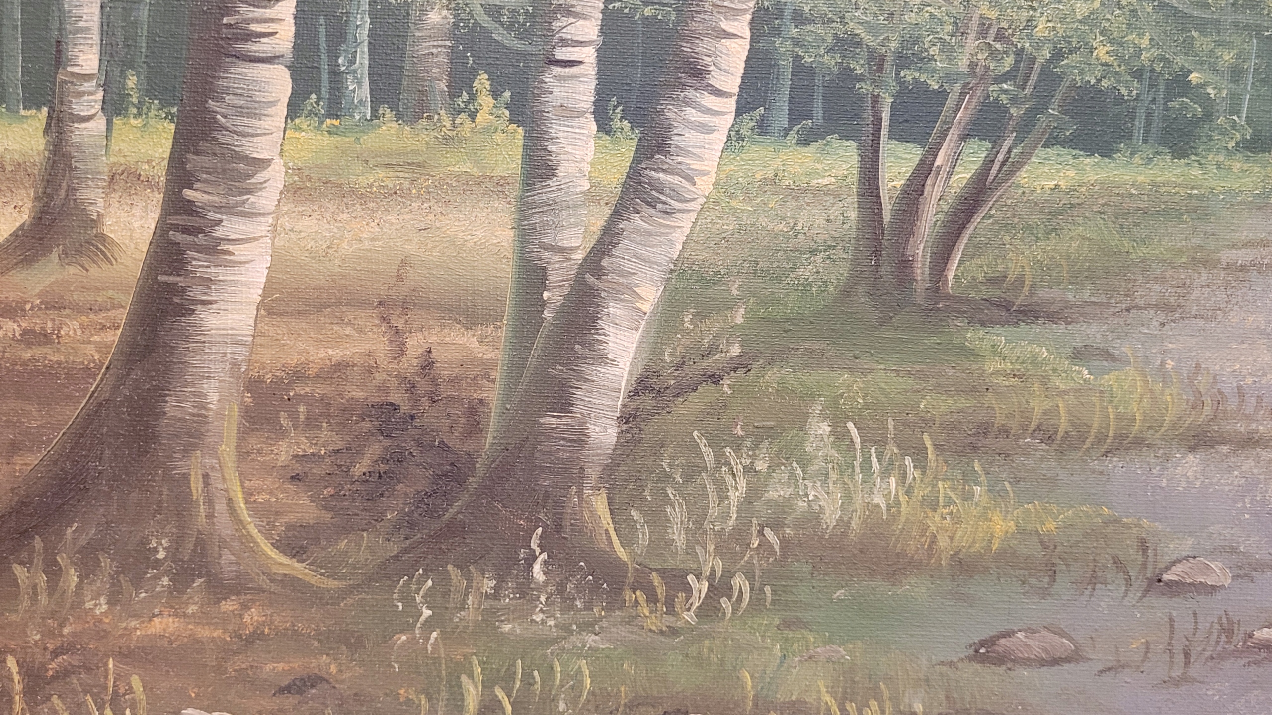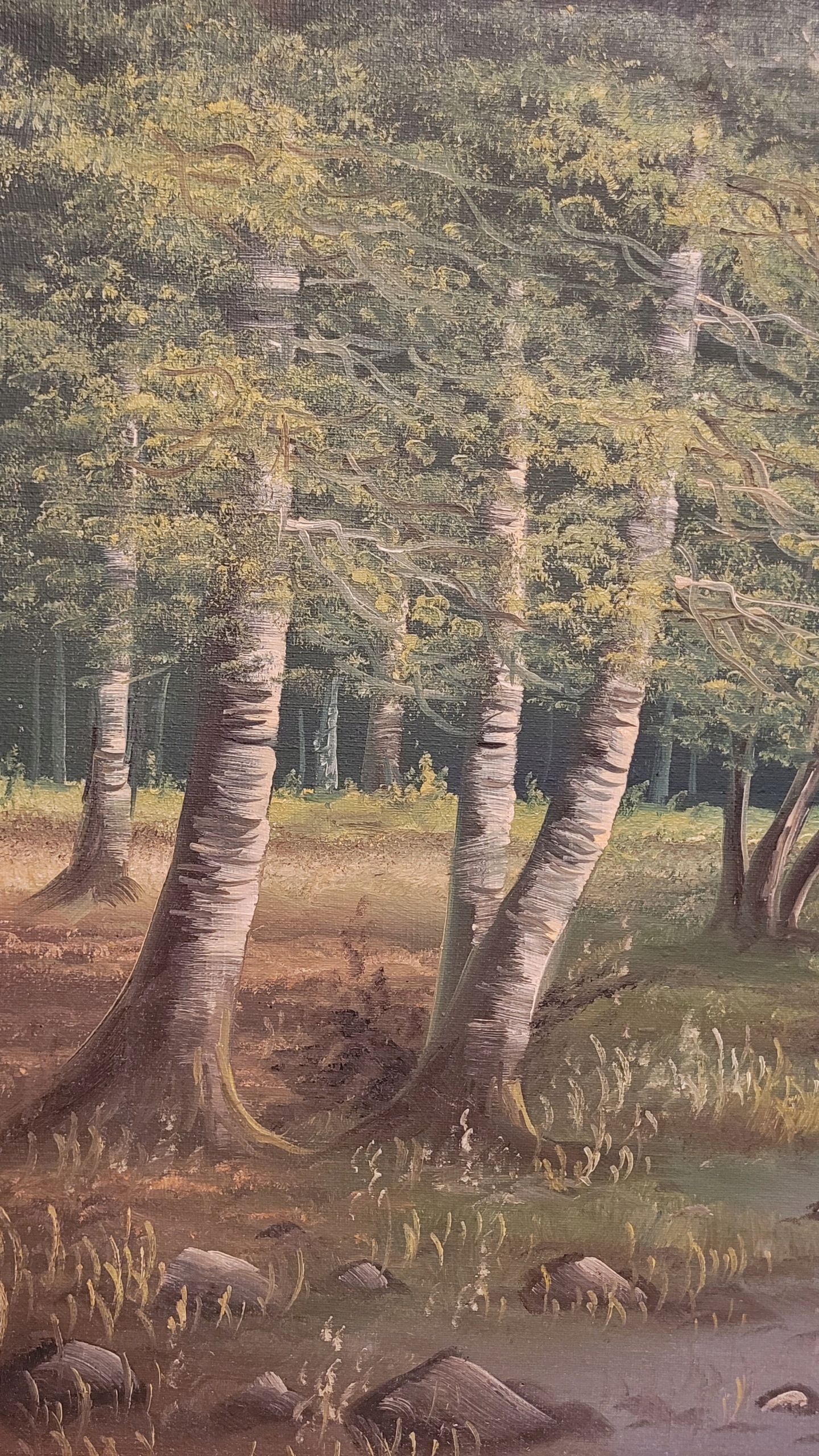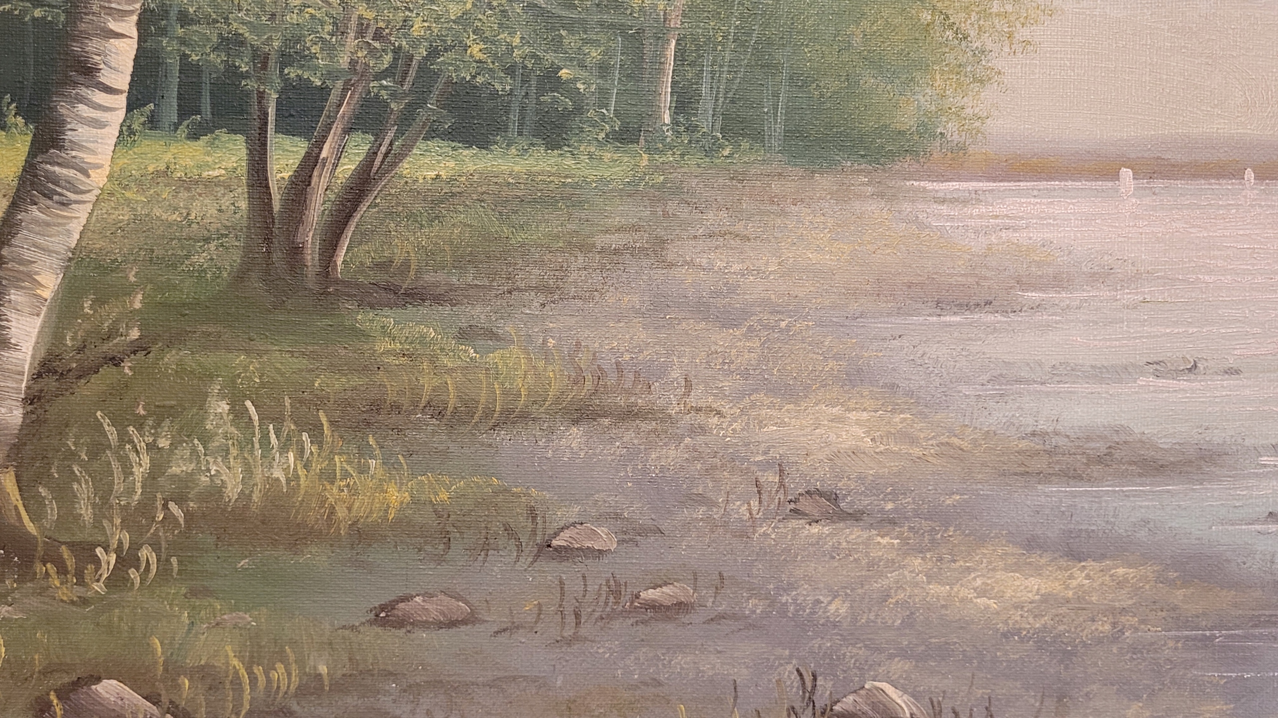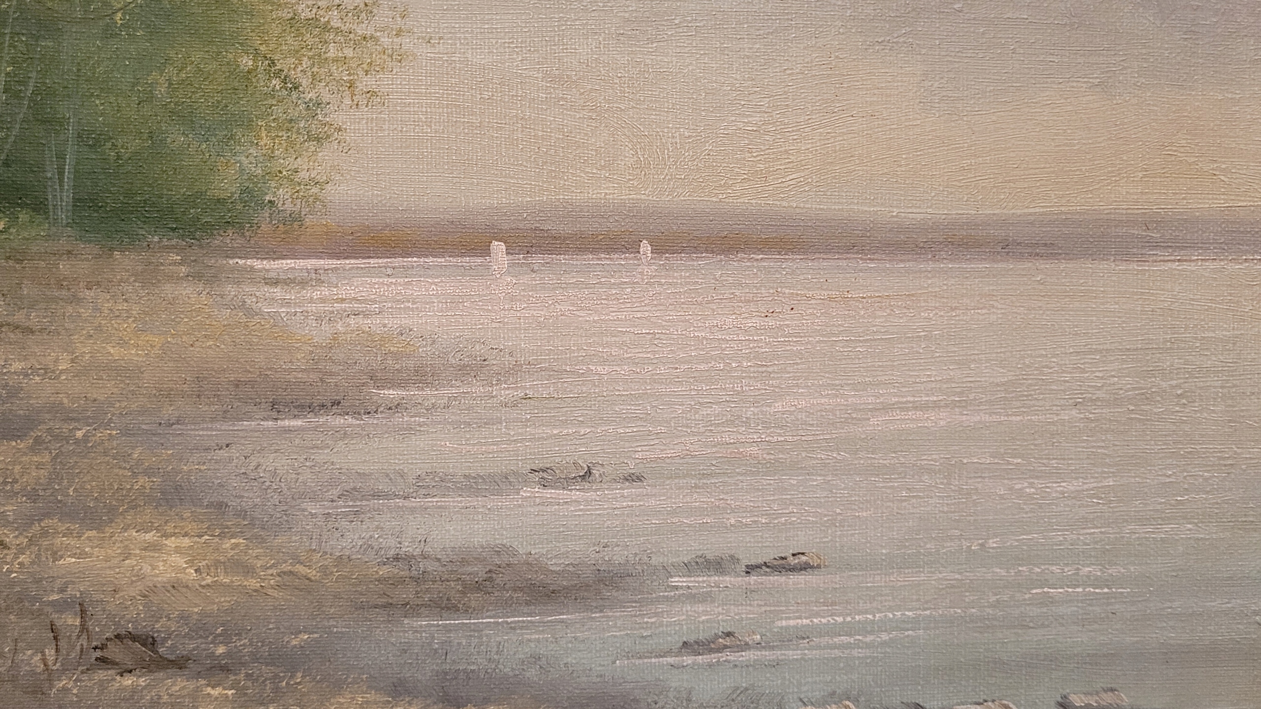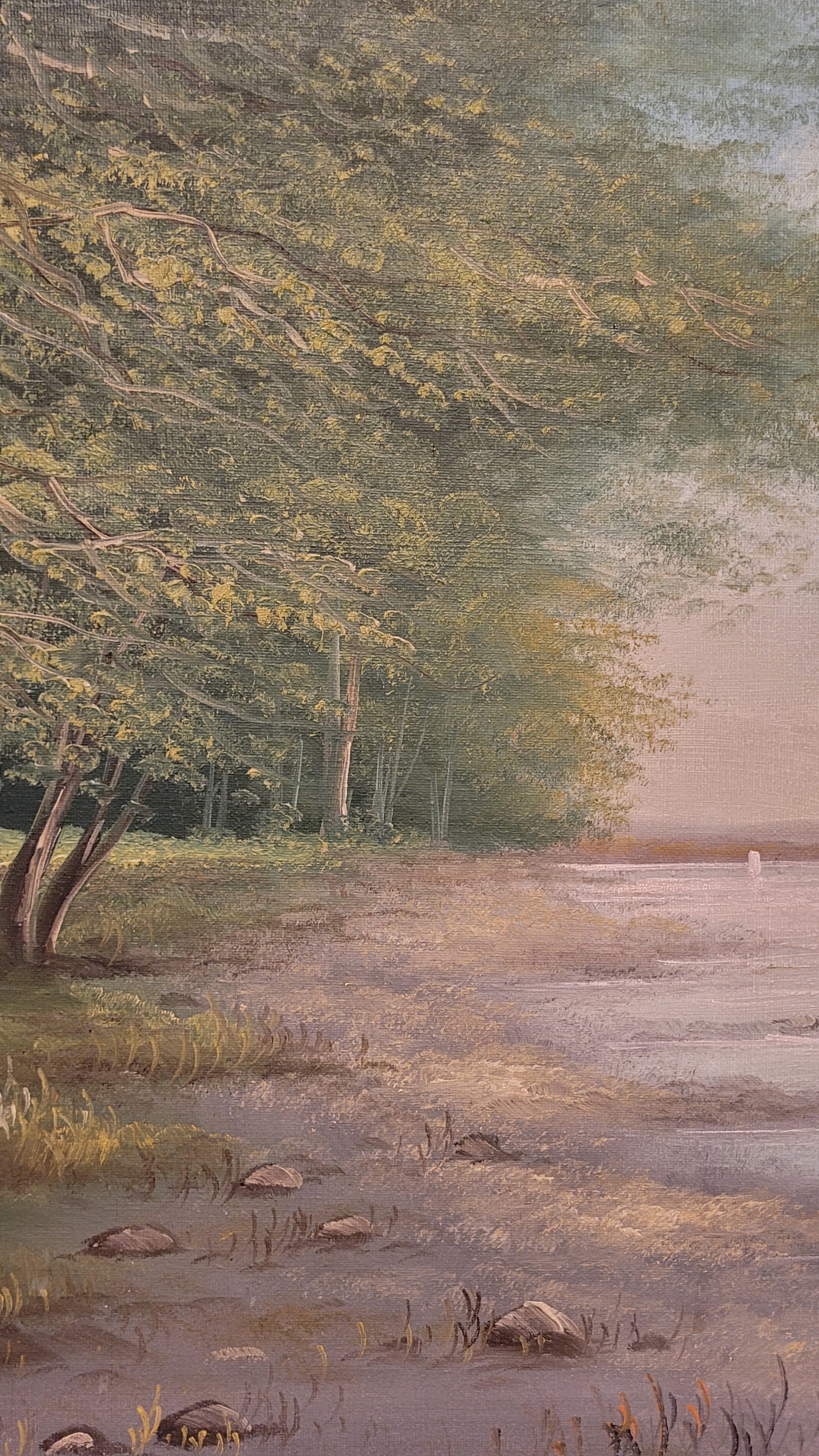 Предмет продажи — красивая старинная картина маслом «ПЕЙЗАЖ С ОЗЕРОМ».