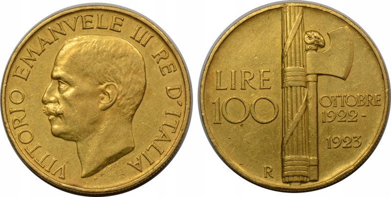 O217.ІТАЛІЯ 100 ЛІР 1923 СТАН: II ЗОЛОТО