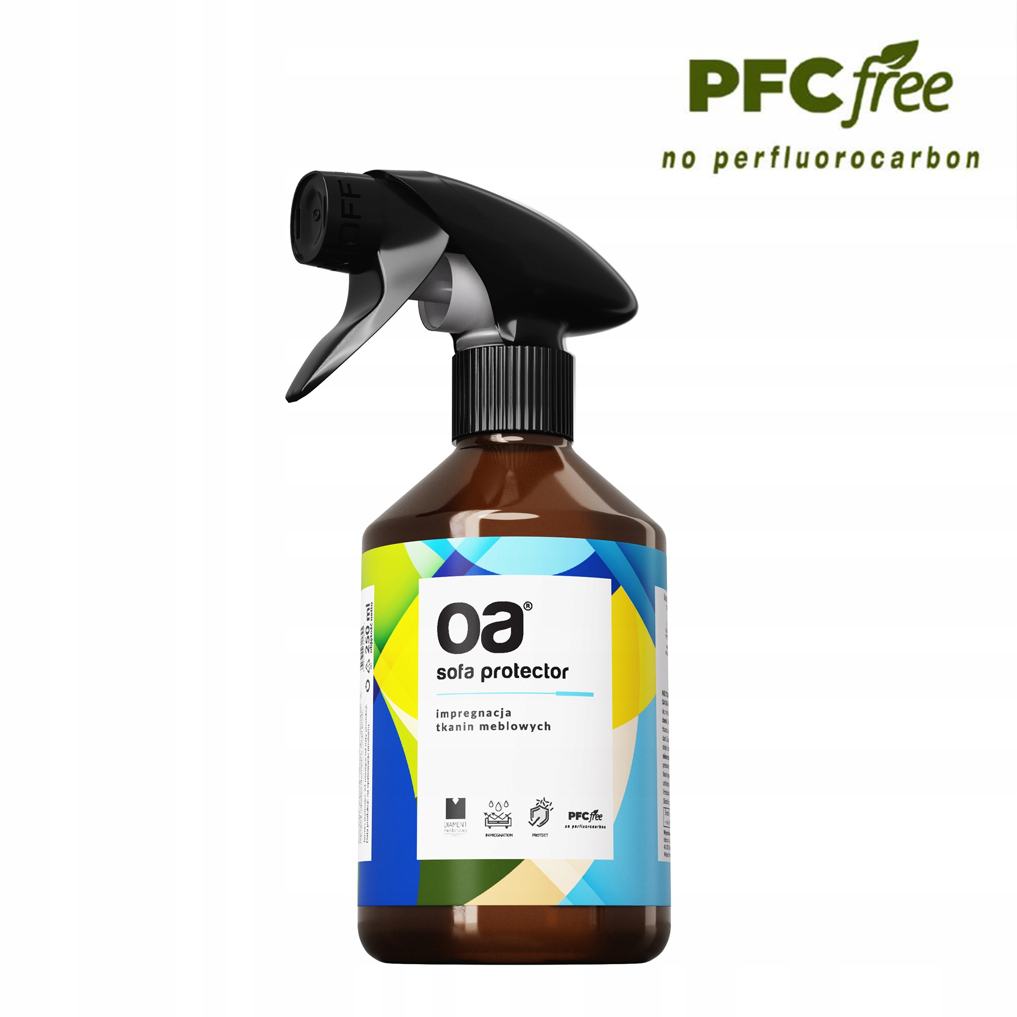 Защитная пленка для дивана OA — не вызывает обесцвечивания или пятен. Кроме того, активные частицы наносеребра защищают ткань, сохраняя ее свежесть в течение длительного времени. Продукт дерматологически протестирован и не влияет на срок службы тканей. Ингредиенты устойчивого земледелия. Продукт не содержит вредных соединений ПФУ, очень часто используемых в подобных продуктах.