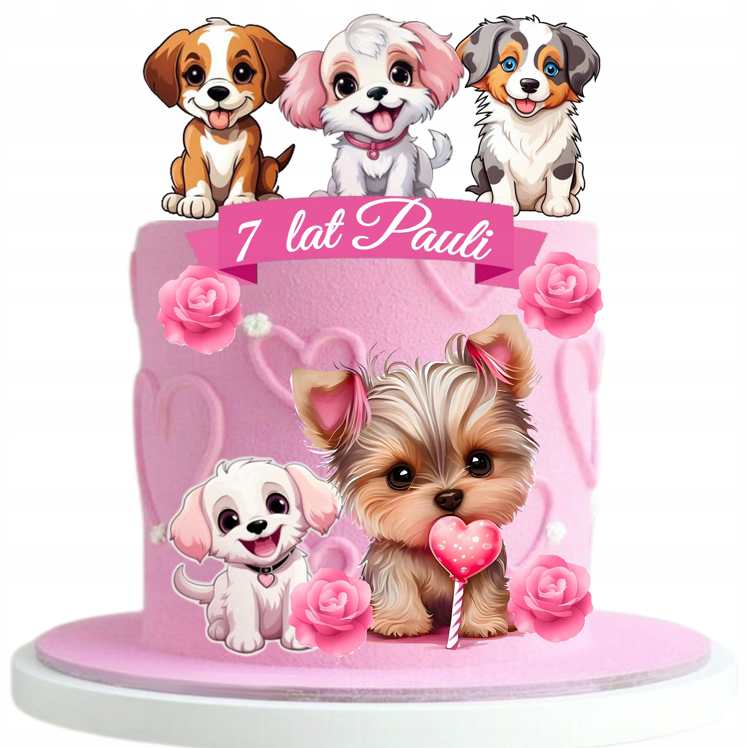 НАБОР OPŁATEK ПЕРСОНАЖИ СОБАКА СОБАКА + Надпись + РОЗЫ