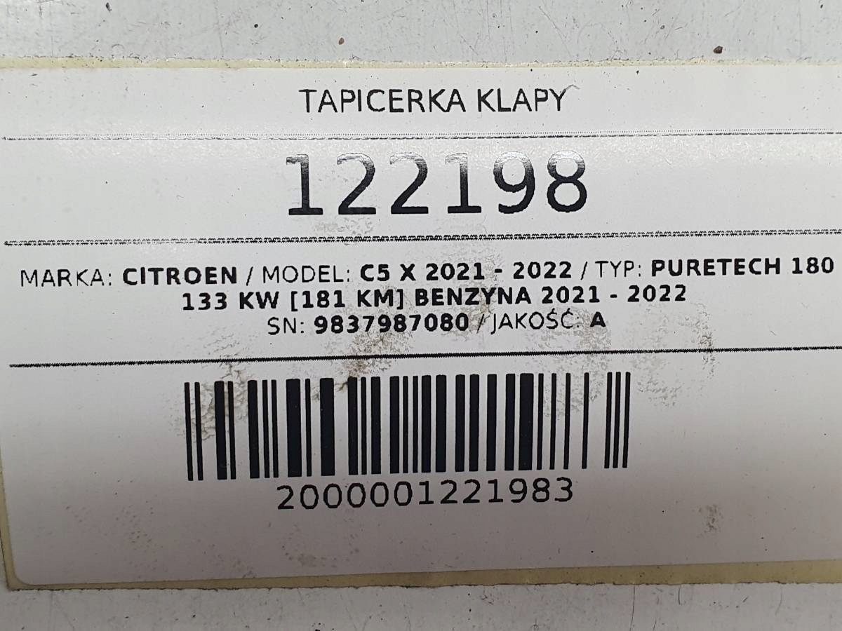 Элемент аукциона: Бэконная обивка багажника Citroen C5 x 9837987080