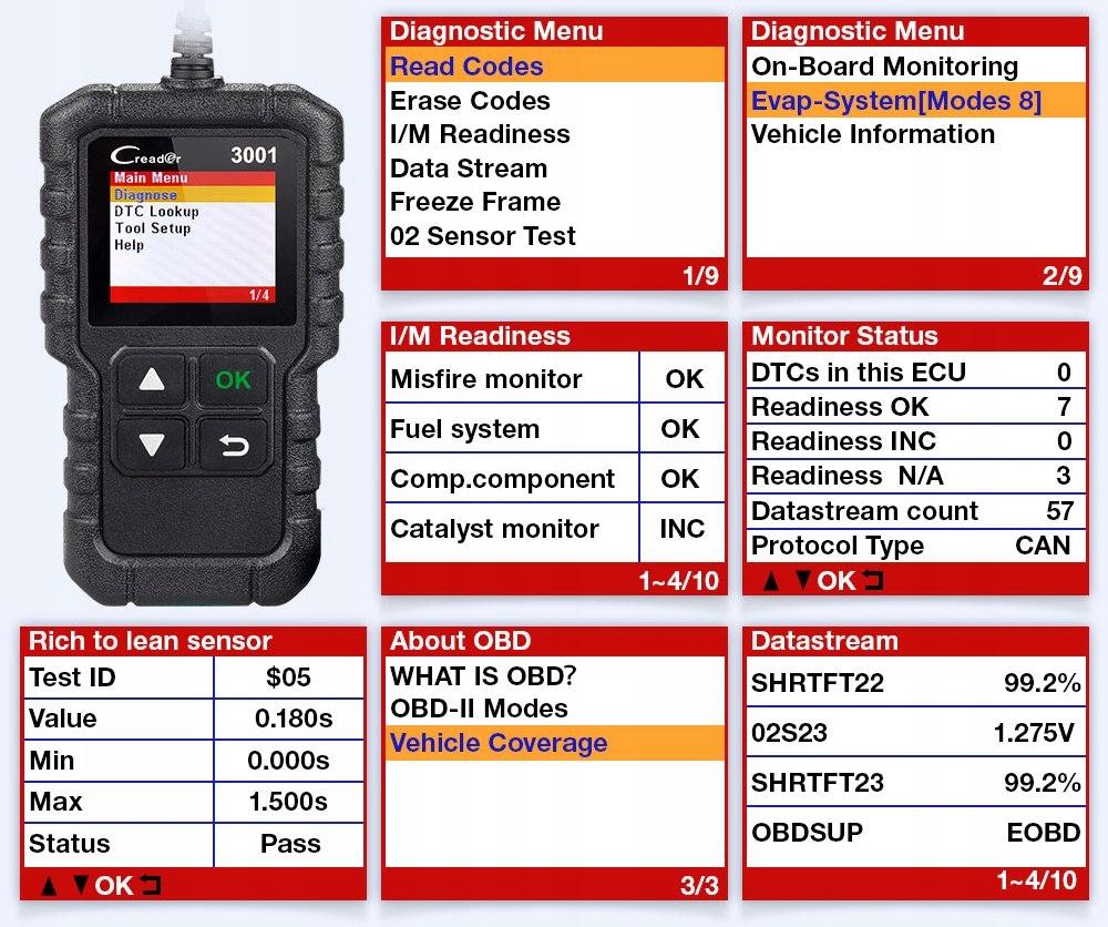 Снимки экрана из МЕНЮ диагностического сканера.