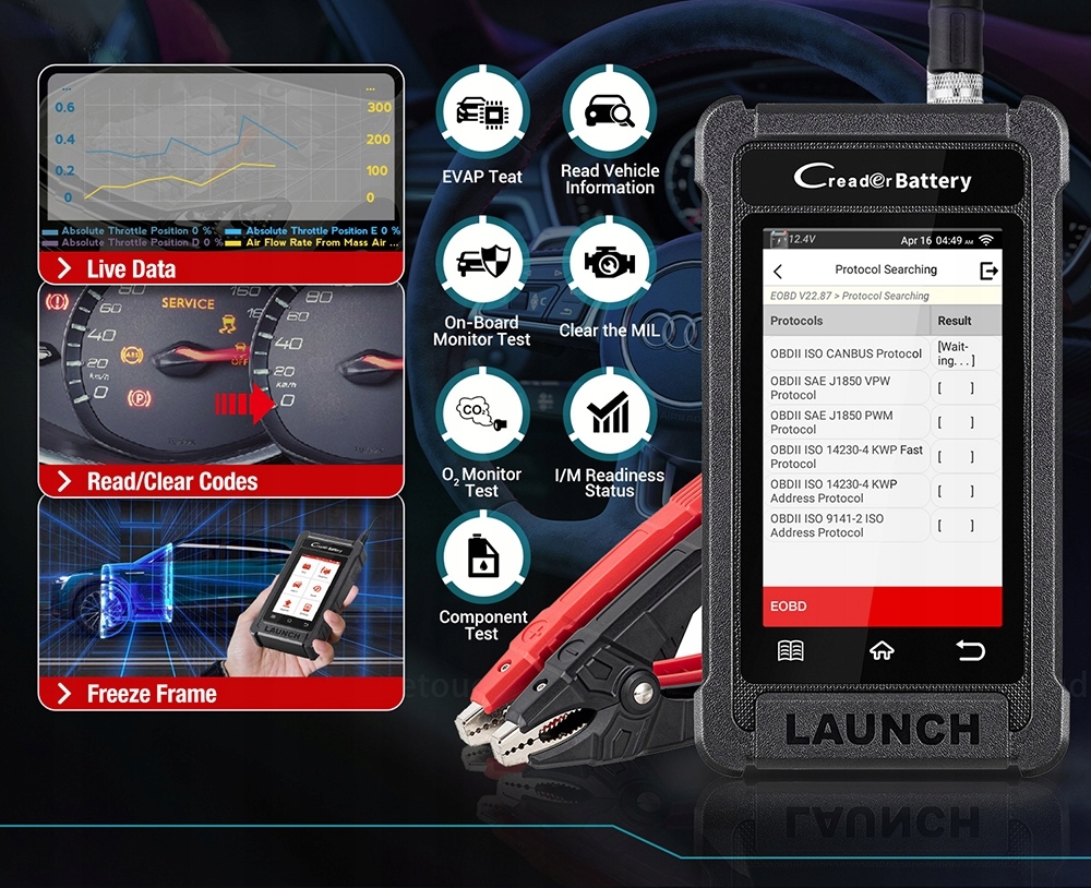 Сканирующий прибор LAUNCH Creader Battery 5001 поддерживает все 10 режимов стандарта OBDII, что позволяет проводить точную и полную диагностику системы. Он может считывать и очищать коды неисправностей выбросов, выключать MIL (проверка света двигателя), считывать готовность I/M, отображать поток данных, останавливать изображение, выполнять проверку системы EVAP, получать информацию об автомобиле и т. д., что помогает ускорить процесс время диагностики и ремонта и экономия денег. Этот инструмент подходит как для любителей, так и для небольших авторемонтных мастерских.