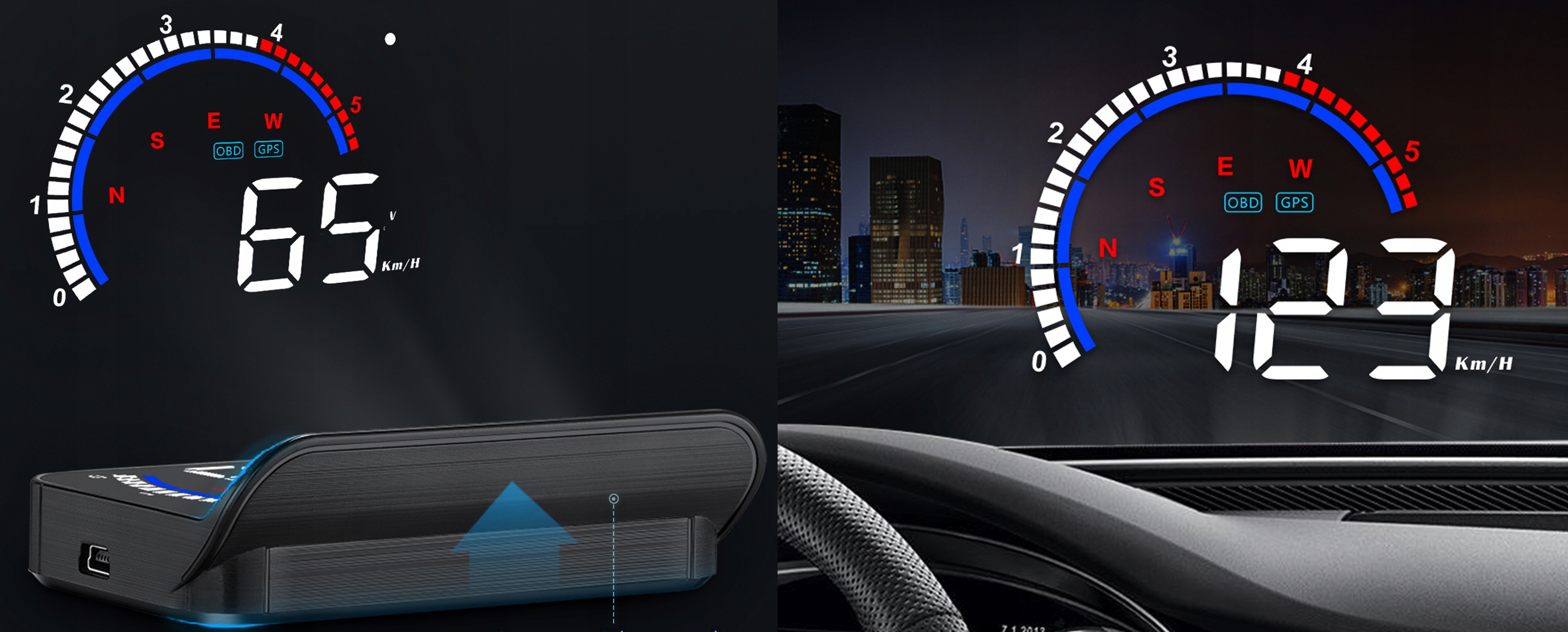 В устройстве используется датчик освещенности. Благодаря этому в солнечный день дисплей будет достаточно ярким, чтобы все было видно. Ночью яркость дисплея HUD будет уменьшена, чтобы не ослеплять водителя.