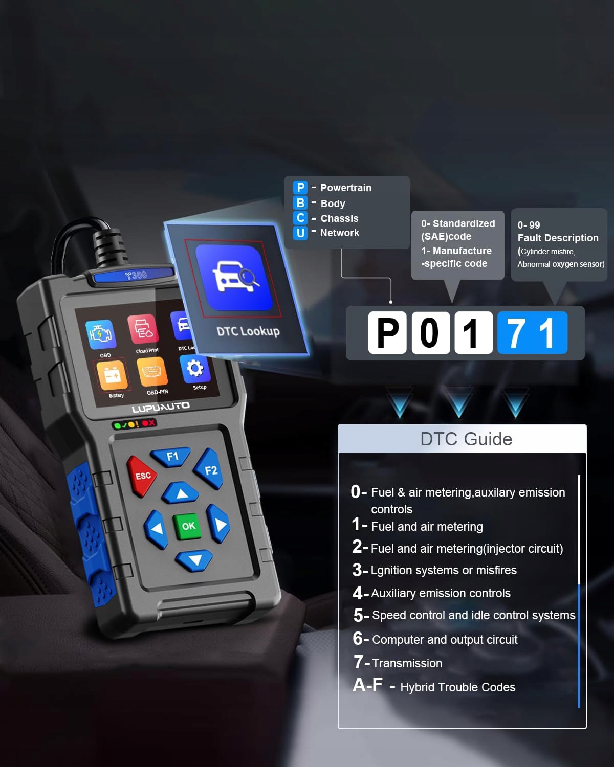 ⭕ Незаменимая вещь для семей: Поддерживая 12 языков, она доступна клиентам по всему миру. Батарейки не требуются; Автоматический считыватель кодов легковых и грузовых автомобилей T300 загружается непосредственно с 16-контактного DLC автомобиля. Это незаменимый предмет в вашем наборе инструментов и идеальный выбор для домашних и автомехаников.