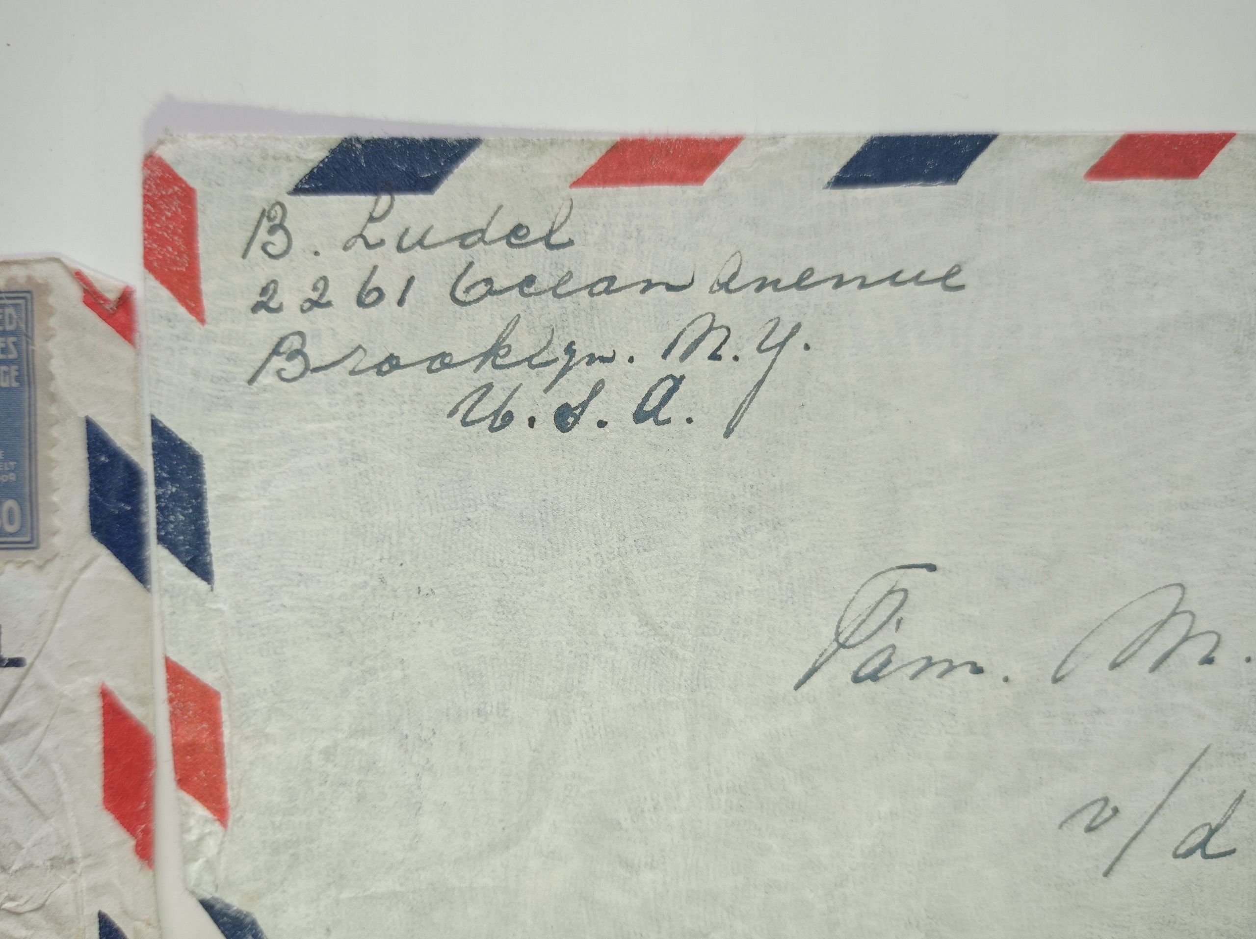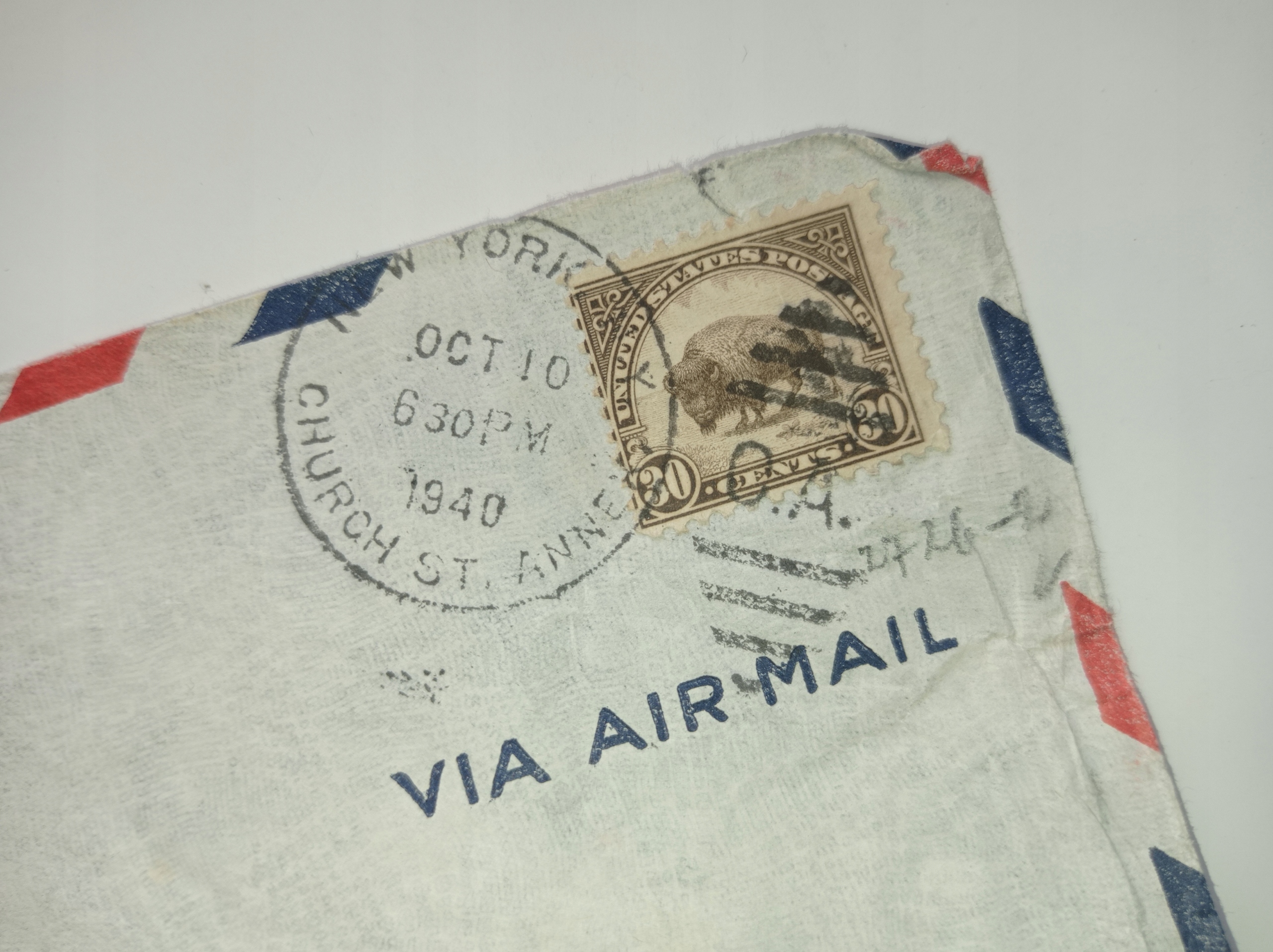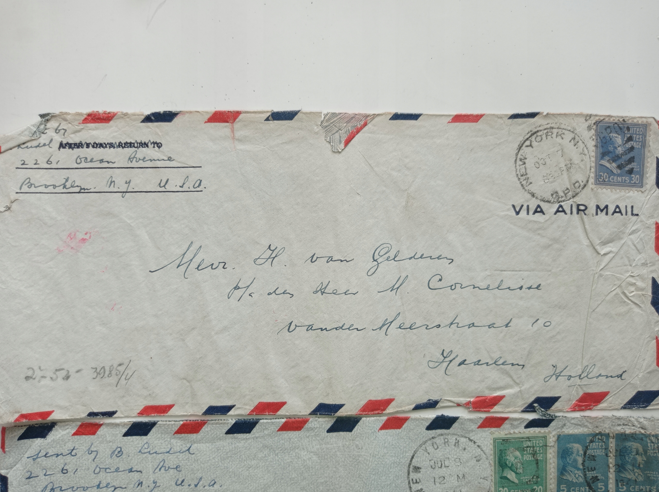 Предметом продажи являются 5 старых конвертов, видимых на фотографиях, адресованных из США в Нидерланды в 1940-41 годах с марками Верховного Главнокомандования Вооружённых Сил Третьего Рейха.