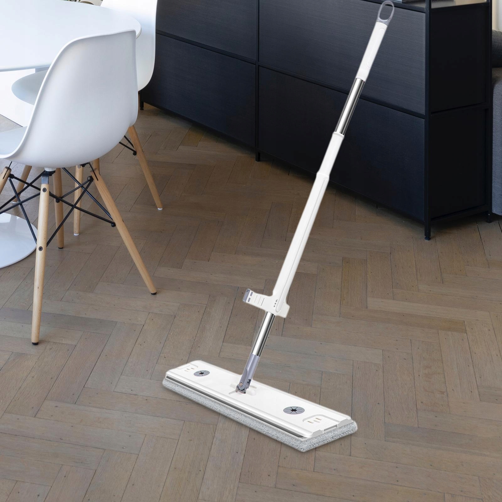 [Mops Self -Locking для очистки]: швабня, оснащенная дренажным скребком, просто перемещайте скребок вверх и вниз, чтобы обезвожить швабру, она очень удобная и практичная. Жидкий наполненный бак дизайн.