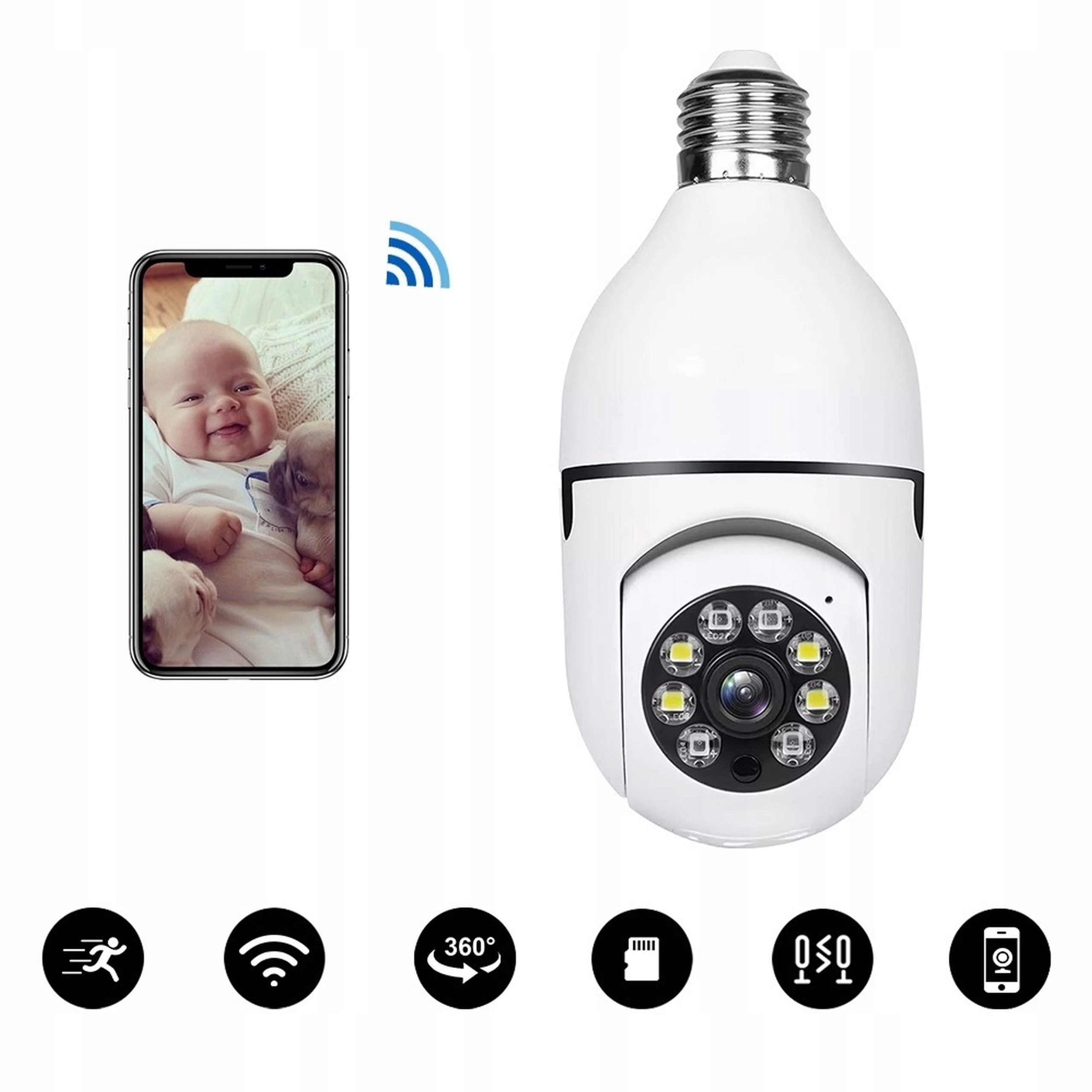 ОБЕРТАЮЧА ШПИГУНСЬКА КАМЕРА, ЗАХОВАНА В ЛАМПОЧЦІ, НІЧНА ЛАМПА WIFI E27