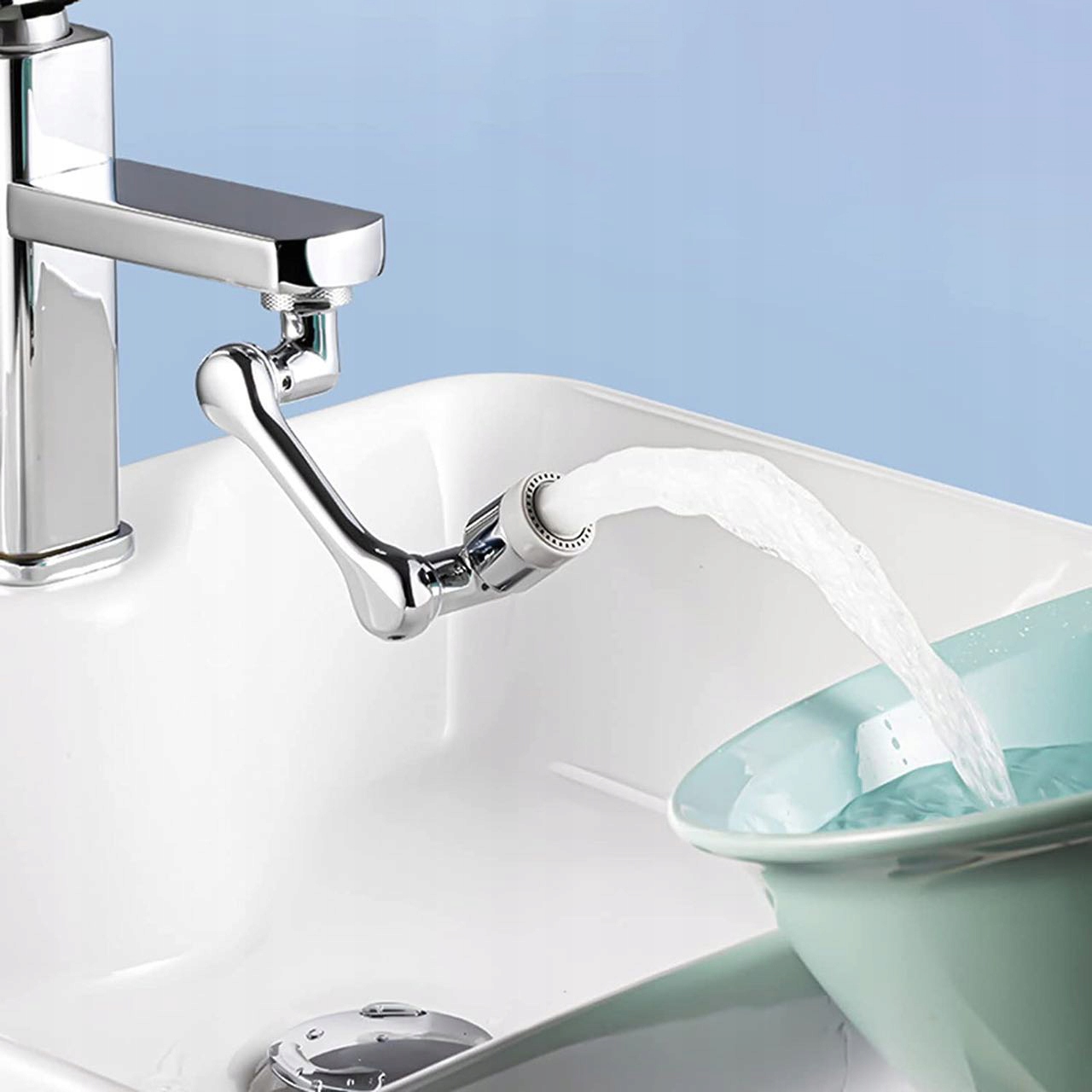 Поворотный смеситель широко используется в смесителях для ванной комнаты или кухни. Его можно свободно согнуть или сложить, что означает, что кончики поворачиваются вверх и вниз на 360°, а излив поворачивается влево и вправо на 360°, позволяя воде течь в каждый угол раковины.