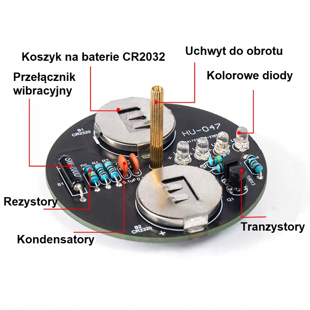 Волчок оснащен вибровыключателем, благодаря которому модуль не загорается при батарейки вставлены. Для получения эффекта освещения его следует перемещать круговыми движениями. Отличный набор для обучения пайке, после которого получается приятный световой эффект.