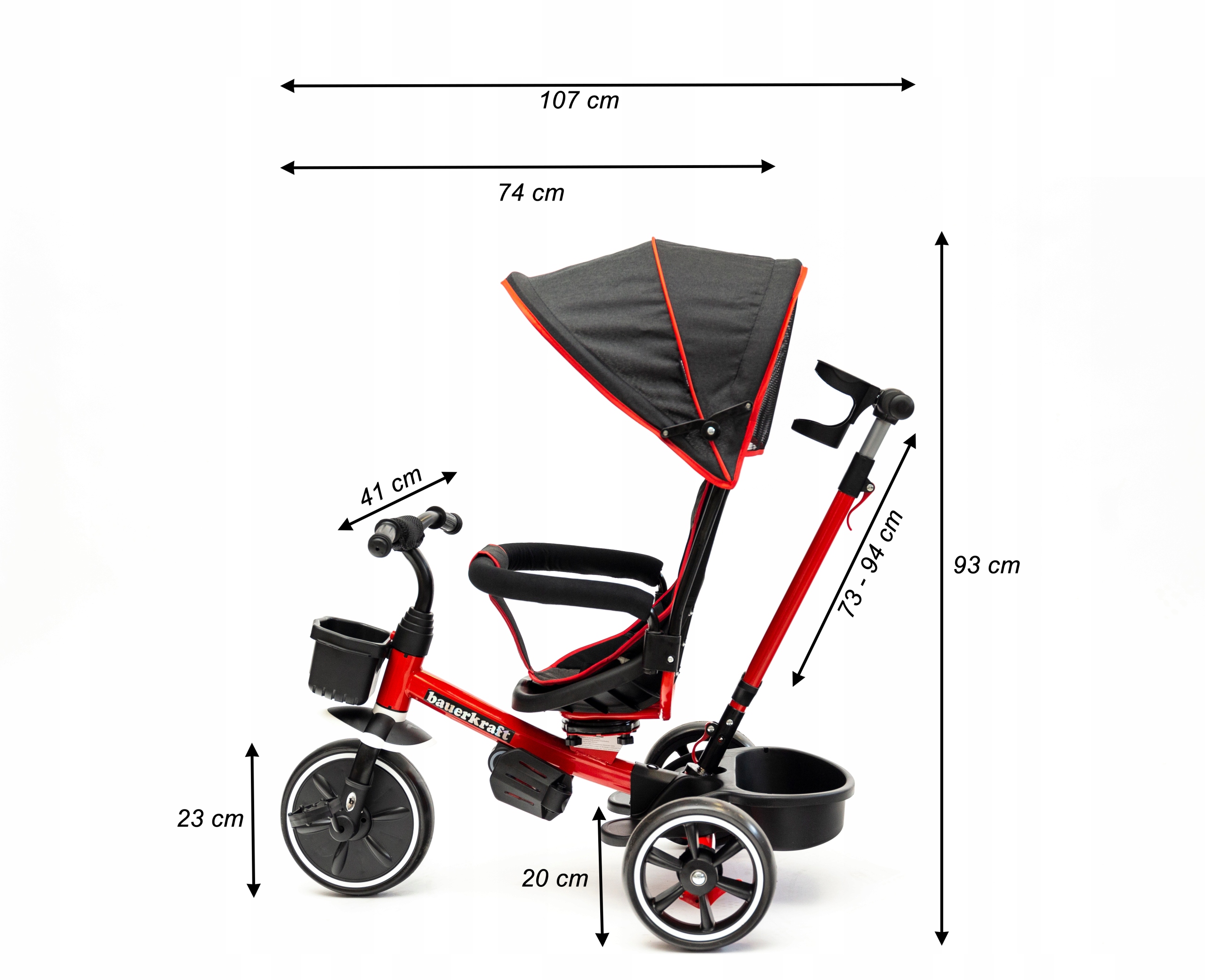 Первый велосипед для каждого ребенка – это обещание наилучшего развлечения и возможность чрезвычайно легко передвигаться . Удобное, профилированное сиденье, высокая, устойчивая спинка, навес, защищающий от чрезмерного солнечного света, два защитных поручня и специальное место для отдыха ног, безусловно, являются его преимуществами.Ради безопасности ребенка использована направляющая, спасибо благодаря чему воспитатель имеет полный контроль над поездкой и благодаря чему наш велосипед становится обязательным первым транспортным средством каждого ребенка. Дополнительной достопримечательностью является передняя корзина, благодаря которой юный водитель сможет взять в поездку все свои самые ценные сокровища. В задней части велосипеда имеется второй контейнер для других необходимых вещей, а на направляющих предусмотрено место для бутылки или чашки с напитком. Мы заботимся о том, чтобы все необходимое было под рукой