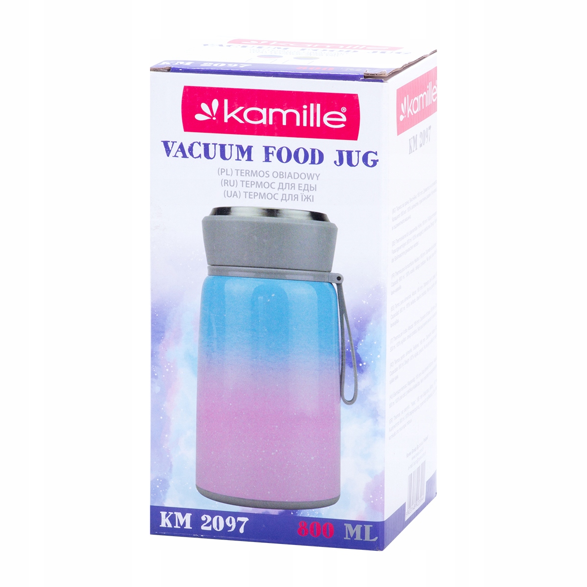Пищевой термос Kamille улучшится Ваш комфорт не только во время поездок и туристических поездок, но и каждый день. Благодаря ему перед уходом на работу в него можно упаковать горячее блюдо, которое можно с удовольствием съесть в обед – отличное решение, особенно когда нет возможности воспользоваться микроволновой печью или общепитом. Кроме того, вам не придется каждый день тратить деньги на заказ обеда на работу, ведь гораздо дешевле приготовить еду самостоятельно дома.