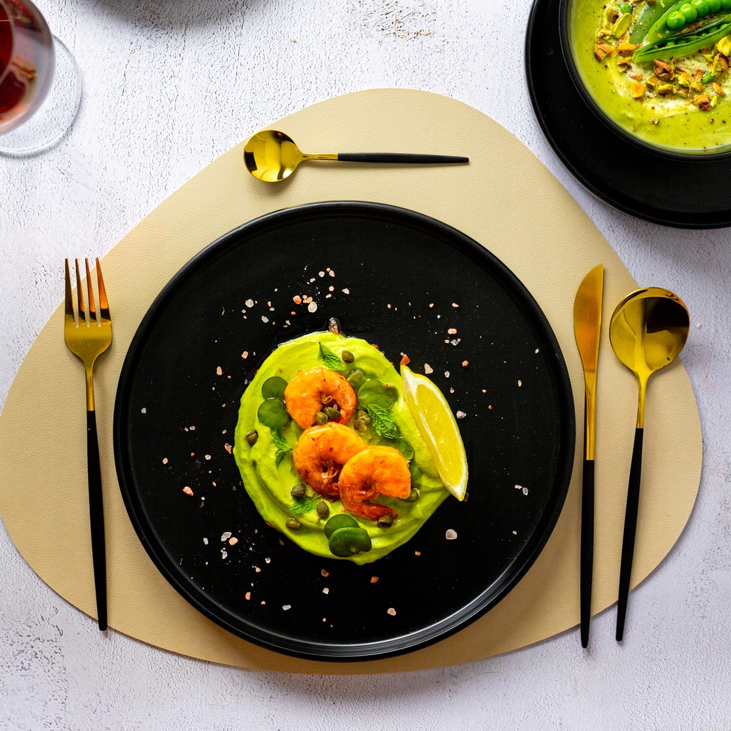 Черный цвет прекрасно подчеркнет цвета блюда на вашей тарелке.