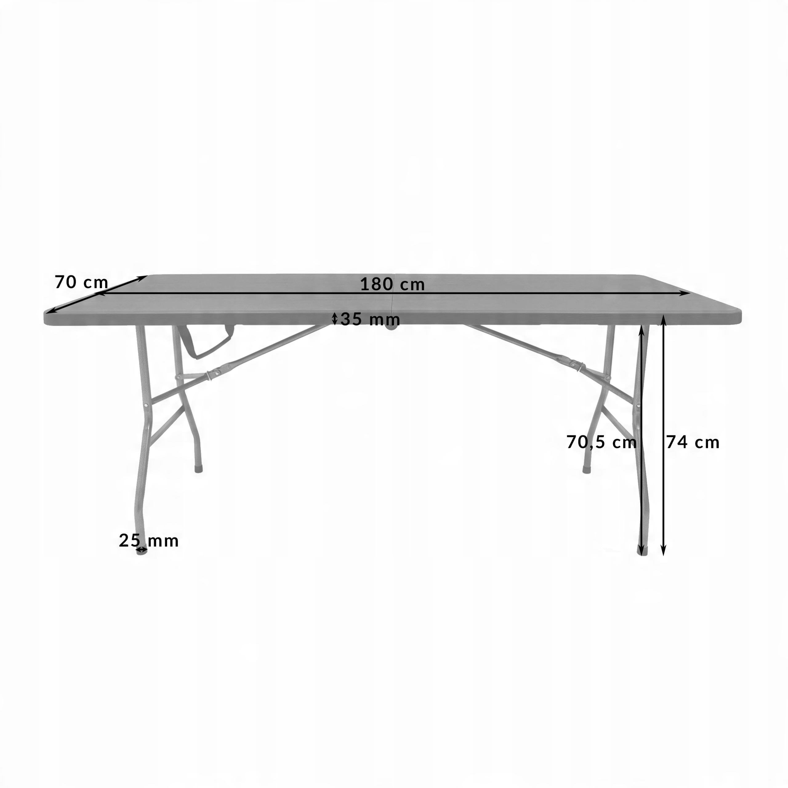 Складной садовый стол имеет чрезвычайно прочную и устойчивую стальную конструкцию с порошковым покрытием, которая устойчива к большим нагрузкам и устойчива к механическим повреждениям, благодаря чему вам не придется беспокоиться о слишком большой нагрузке на стол, например, во время мероприятий на свежем воздухе или барбекю.
