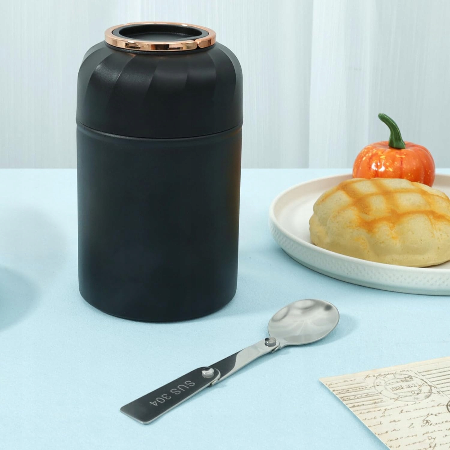 ♨️Встроенная ложка: Этот термос для детей и взрослых имеет емкость 550 мл (19 унций) и складную ложку внутри. Не волнуйтесь, если ваш ребенок забудет ложку. Крючок облегчает крепление. Храните наш герметичный контейнер для пищевых продуктов в сумке для обеда.