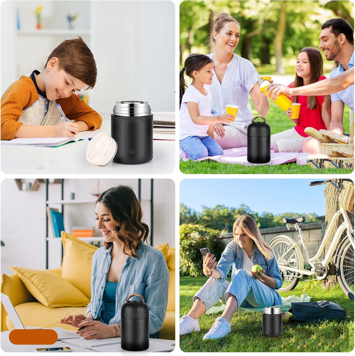 ♨️Сохранение тепла или холода: Технология вакуумной изоляции максимально поддерживает температуру горячих или холодных продуктов. Двойные стенки из нержавеющей стали сохраняют еду горячей до 10 часов и холодной до 12 часов, что делает ее идеальной для детей, взрослых, на работе, студентов, походов, поездок, пикников и активного отдыха.