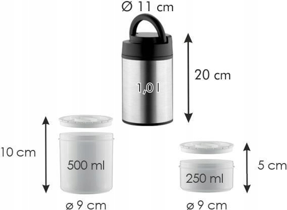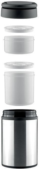 - Термос имеет две пластиковые емкости для раздельного хранения супов, соусов, гарниров, салатов и т.п. li>