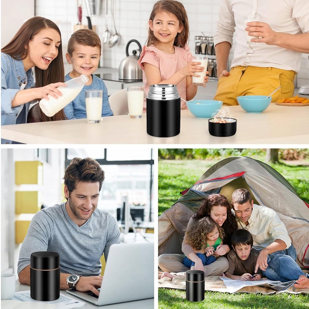 - С уверенностью упакуйте наши устойчивые к поту и герметичности банки для еды в сумку для обеда. Вам не нужно беспокоиться о том, что он протечет. Конструкция сброса давления воздуха позволяет легко открывать.