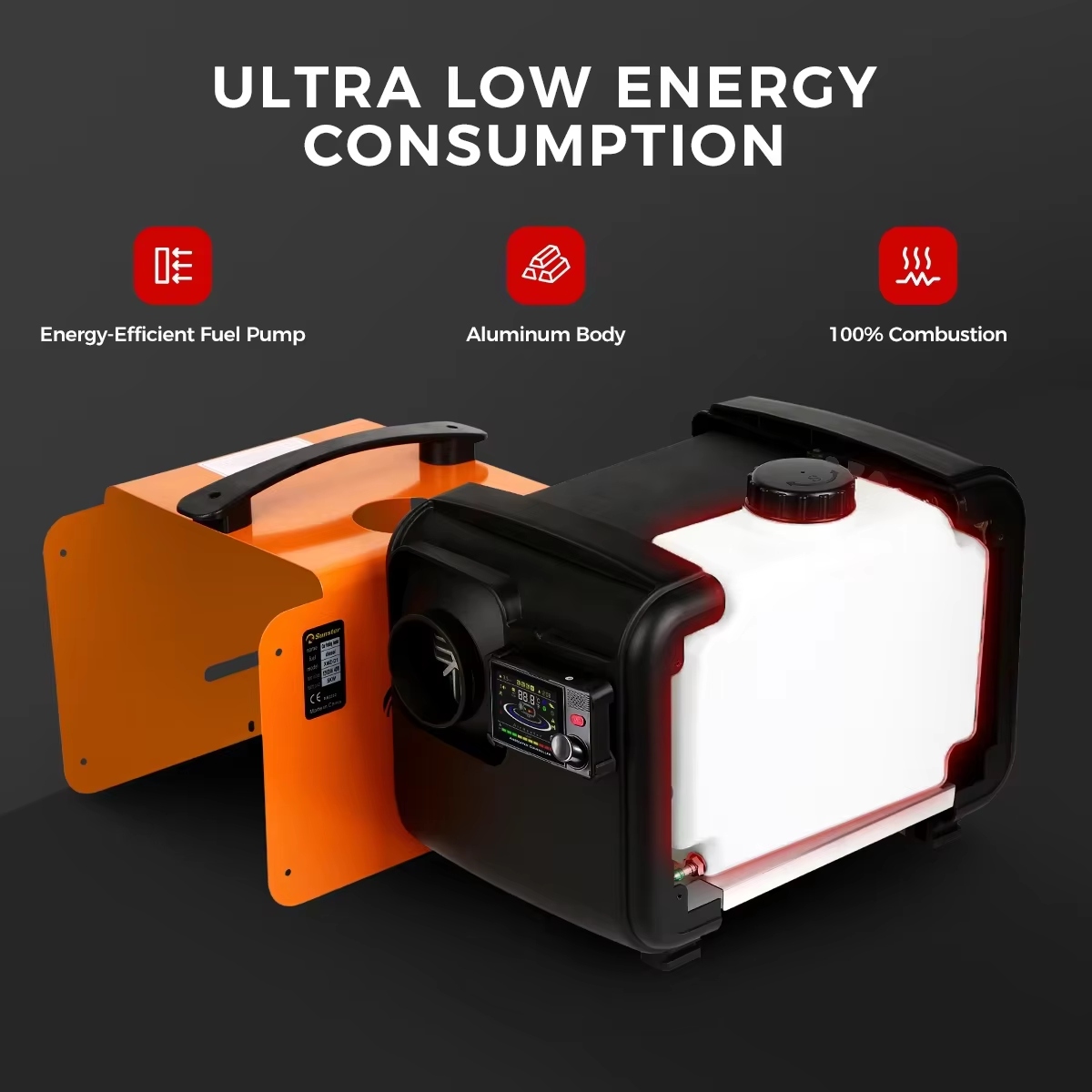 Топливный бензин: только дизель. Нагреватель сгорания оснащен масляным насосом, который точно контролирует подачу топлива, что обеспечивает точное сгорание, экономит энергию и обеспечивает плавную работу. Полный топливный бак с емкостью 5 л/1,3 Галоны обеспечит обогреватель в течение до 100 часов, гарантируя низкие выбросы выхлопных газов и длительную работу.