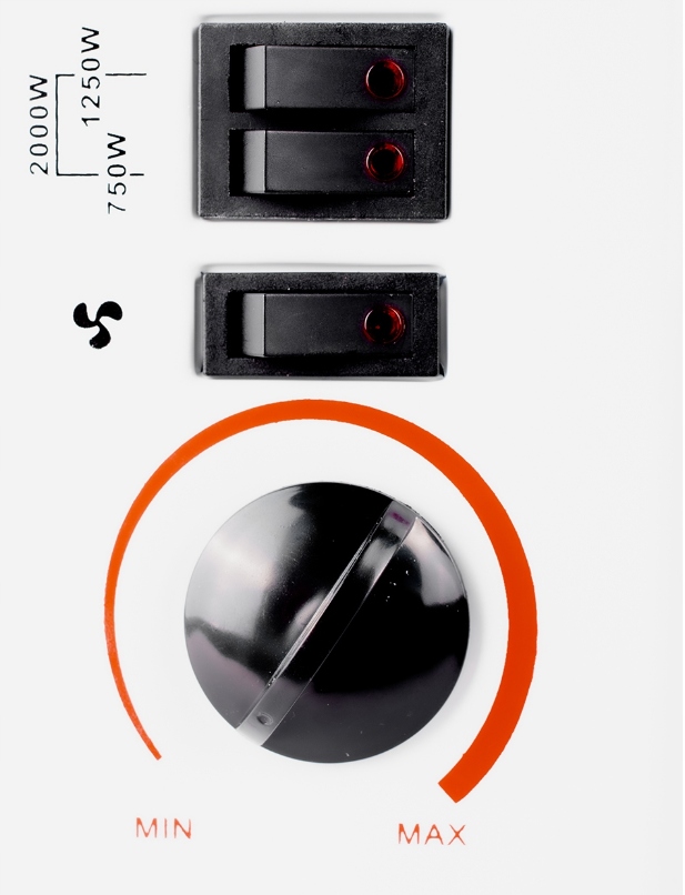 Удобство переключения мощности обогревателя обеспечивают две кнопки с сигналами, указывающими, достиг ли термостат нужной температуры.
