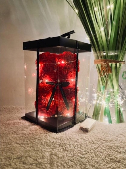 День святого Валентина приближается , и у вас есть шанс получить незабываемый сюрприз! наш большой медведь с розами - это не просто дар - это выражение глубоких чувств, которые превышают границы тысячи слов. Вручая этого очаровательного плюшевого мишка с более чем 300 красивыми розами , вы наверняка вызовете широкую улыбку на своем любимом лице. Это не только подарок, это уникальный ремесленник, который излучает любовь и заботу в каждой детали
