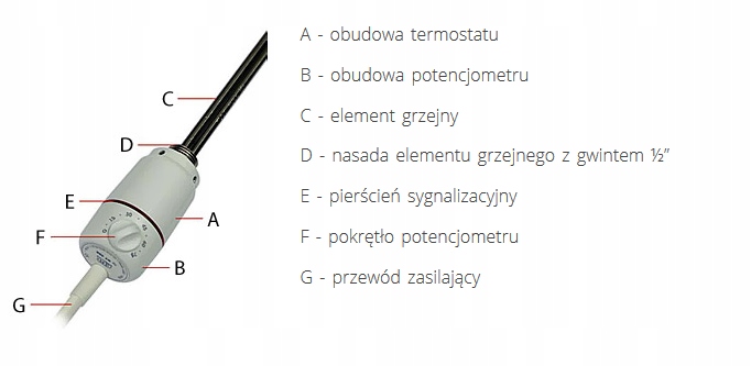- вторая подвижная часть (Б) с ручкой регулировки температуры и шнуром питания, вращающимся вдоль оси устройства, что позволяет легко устанавливать ручку термостата.