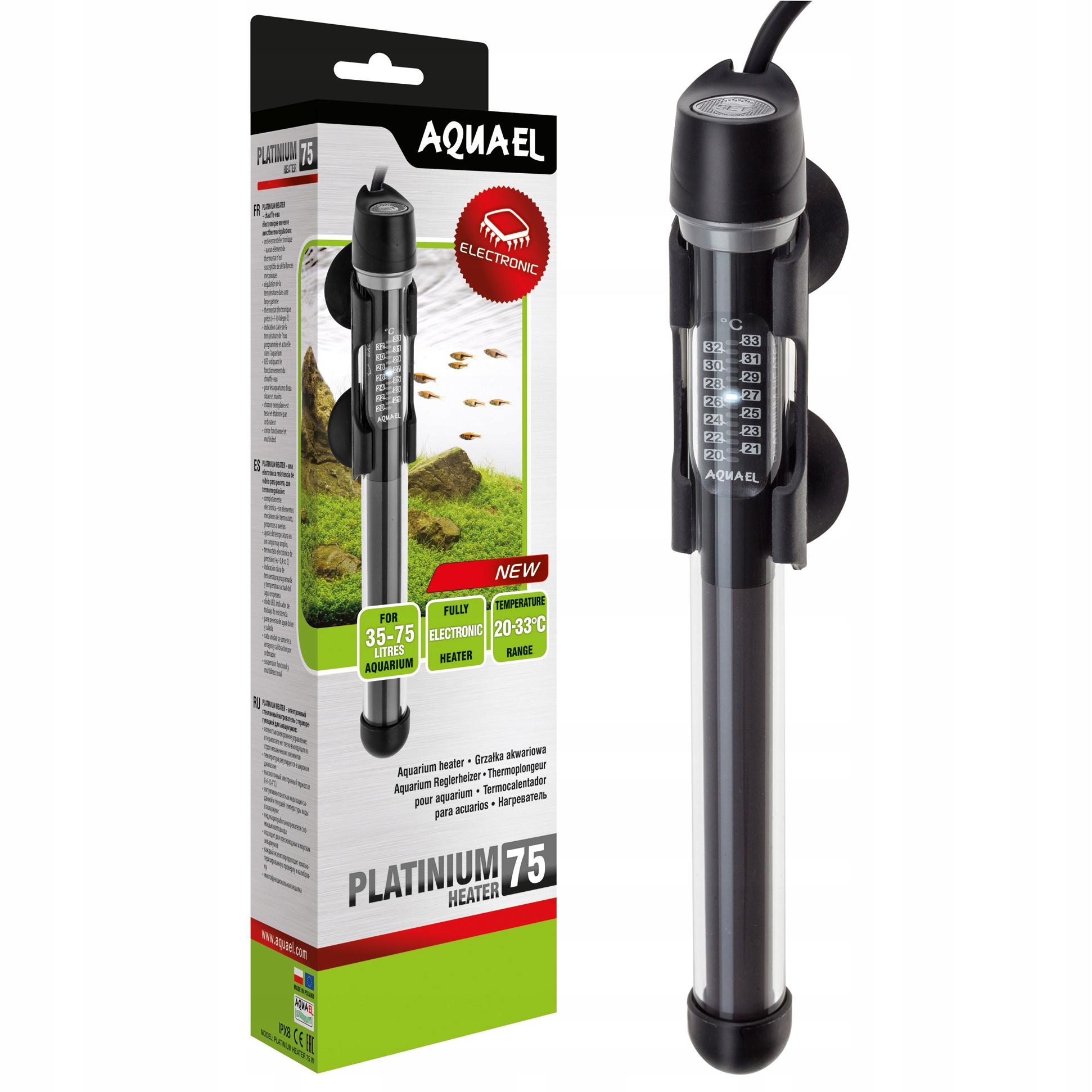 AQUAEL PLATINIUM HEATER 75W - НАГРЕВАТЕЛЬ С ТОЧНЫМ ТЕРМОСТАТОМ ДЛЯ АКВАРИУМА