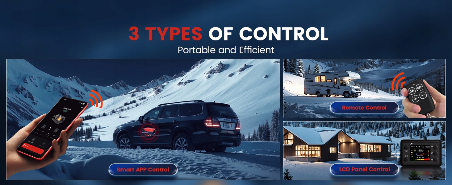 【Управление приложением】 Получите полный контроль с помощью умного приложения и точно контролируйте температуру, таймер, уровни мощности, режим высоты, автоматические функции и настройки вентилятора. Дизельный обогреватель обеспечивает высочайший уровень комфорта и безопасности. Эффективно управляйте обогревателем из любого места и обеспечивайте идеальный комфорт, экономя драгоценное время и усилия.