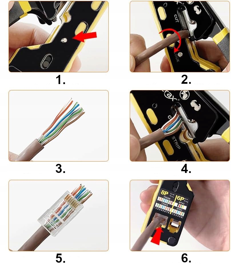 Оплачивая «Инструмент для обжима сетевых кабелей RJ45 cat5/6/7 RJ12 RJ11 для сквозных вилок», вы можете быть уверены, что данный товар из каталога «Щипцы» будет доставлен из Польши и проверен на целостность. В цене товара, указанной на сайте, учтена доставка из Польши. Внимание!!! Товары для Евросоюза, согласно законодательству стран Евросоюза, могут отличаться упаковкой или наполнением.