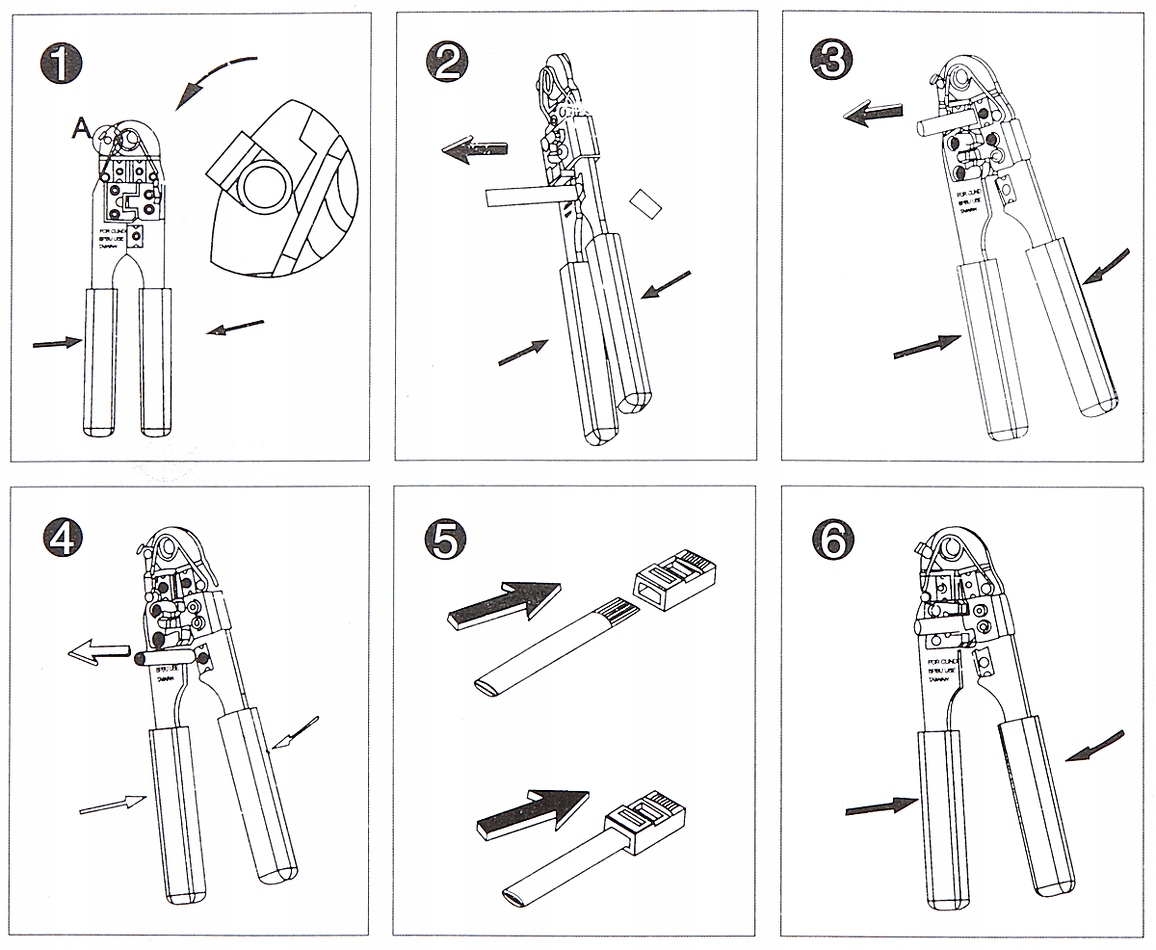 Инструмент для обжима 8-контактных вилок Bell и модульных вилок (телекоммуникационная витая пара).