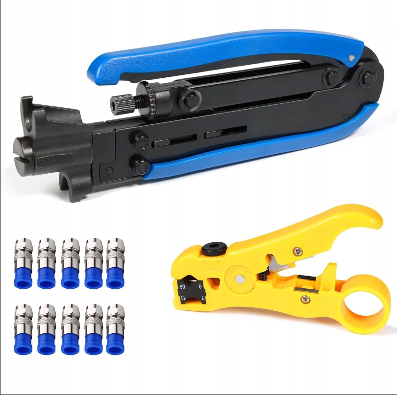 3. ПРОЧНЫЕ СТАЛЬНЫЕ ЛЕЗВИЯ: В комплект инструментов для обжима коаксиального кабеля входят инструменты для зачистки коаксиального кабеля, инструменты для зачистки круглого кабеля, резаки и инструменты для зачистки плоского кабеля для быстрой резки и зачистки. Картридж двусторонний и может использоваться с rg 59/6 с одной стороны и rg7/11 с другой.