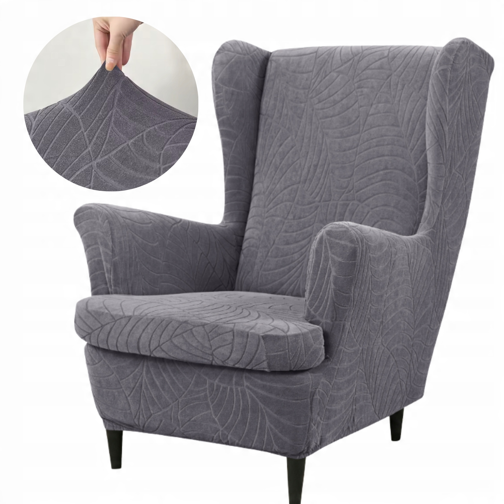 Обложка для стула Uszak jacquard гибкие густые конструкции темно -серые листья